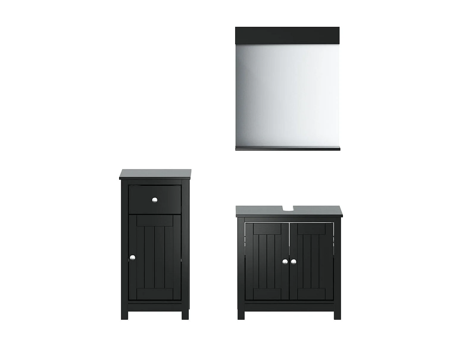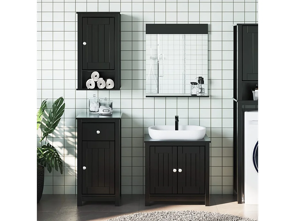 Meubles de salle de bain 3 pcs BERG noir bois de pin massif
