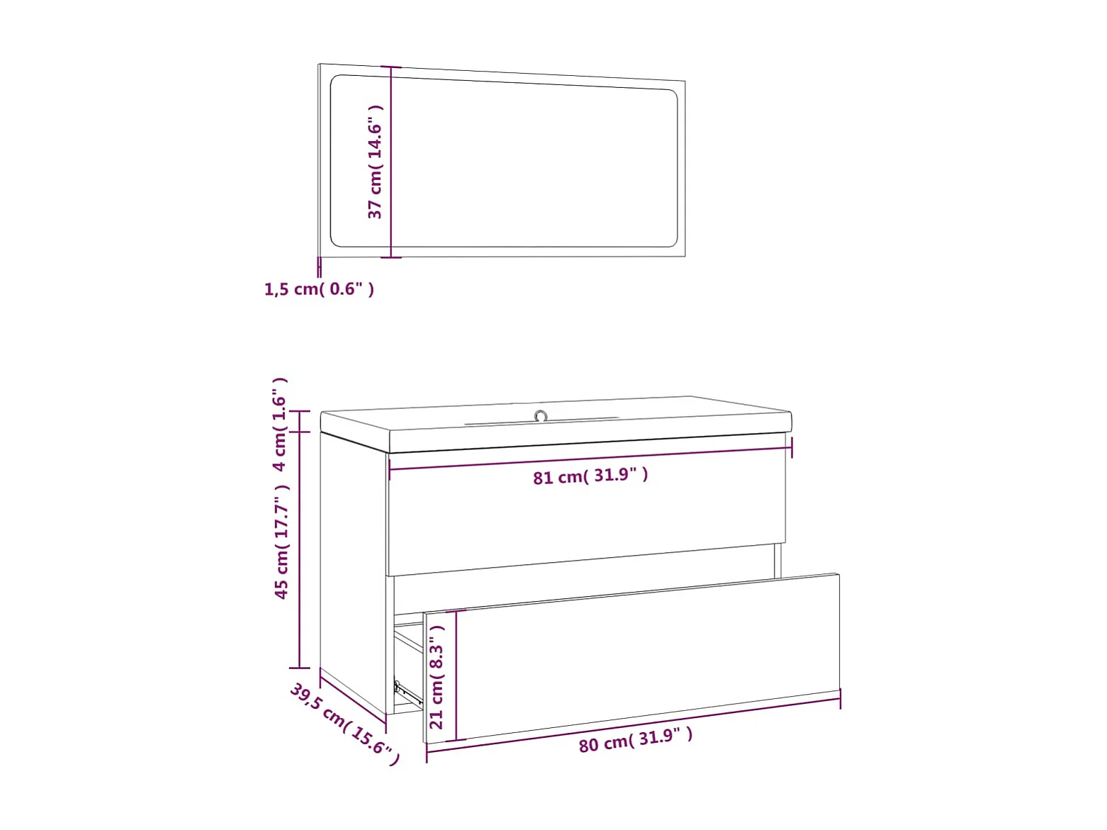 Meubles de salle de bain Chêne fumé Bois d'ingénierie