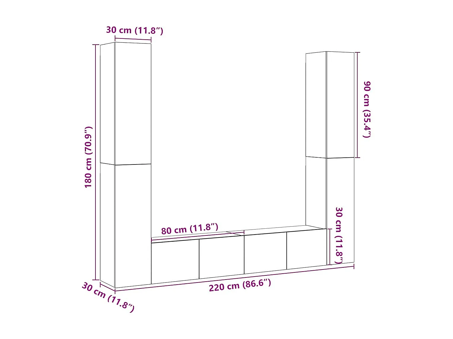 Meuble TV Longueur 1,49m à 2m