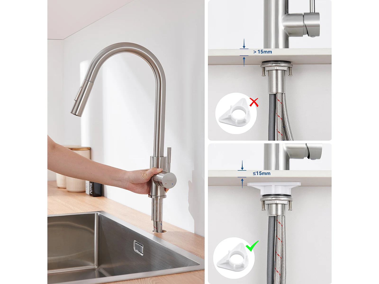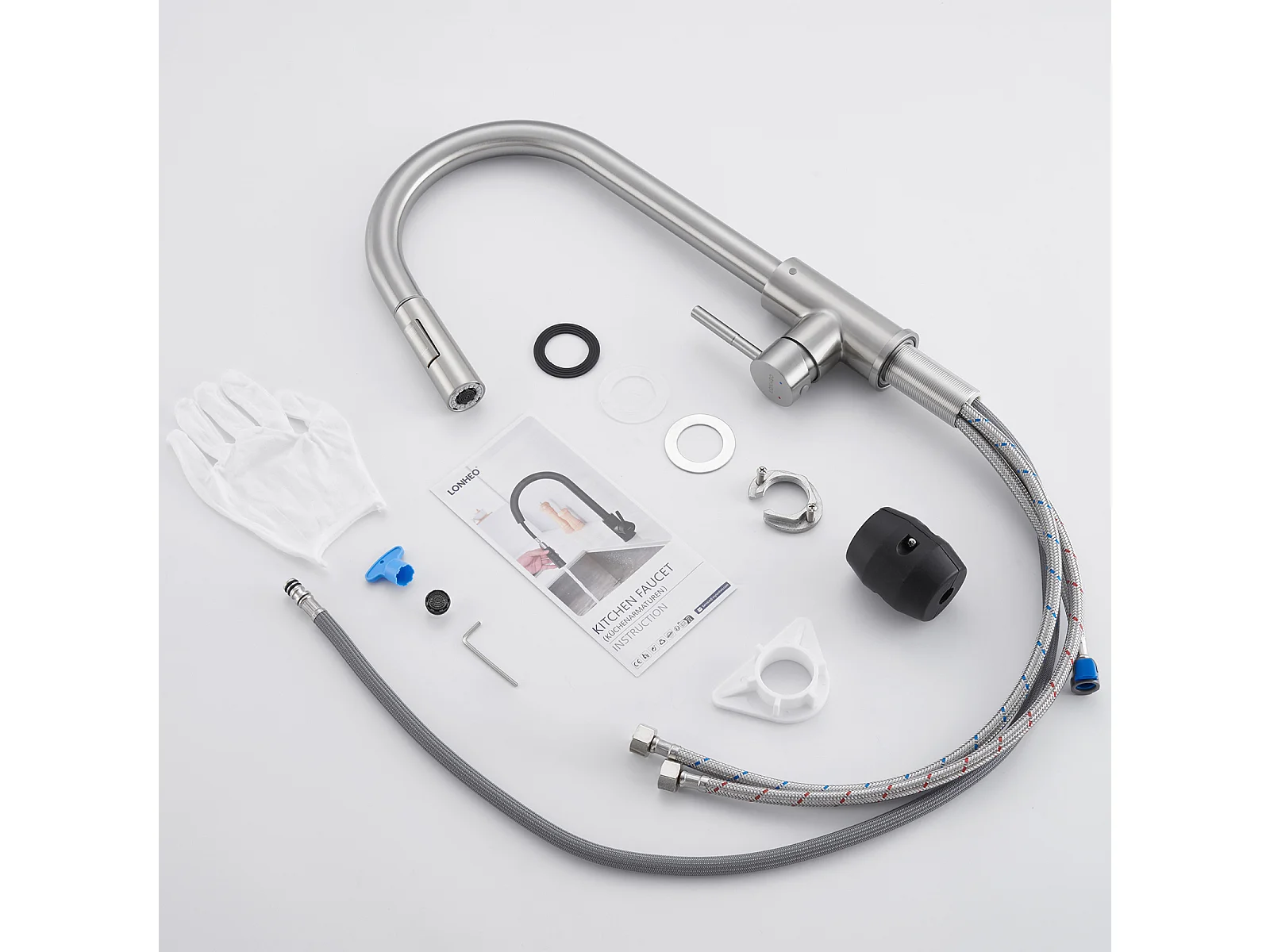 Mitigeur de Cuisine avec Douchette Extensible Rotatif à 360° 2 Modes de Pulvérisation Chaude/Froide Robinetterie Évier Acier Inoxydable-Brossé