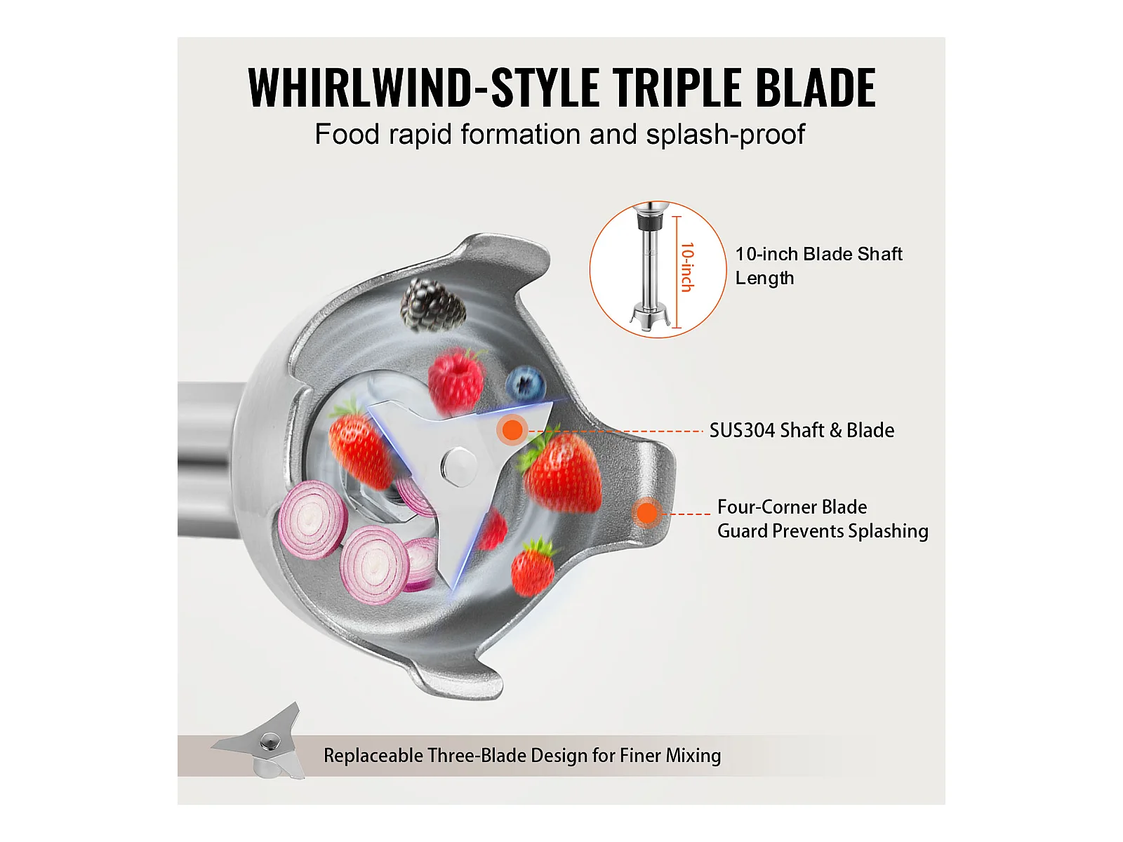 Mixeur à Immersion Commercial SucceBuy, 350 W, avec Lame en Acier Inoxydable, pour Mélanger la Soupe et les Sauces