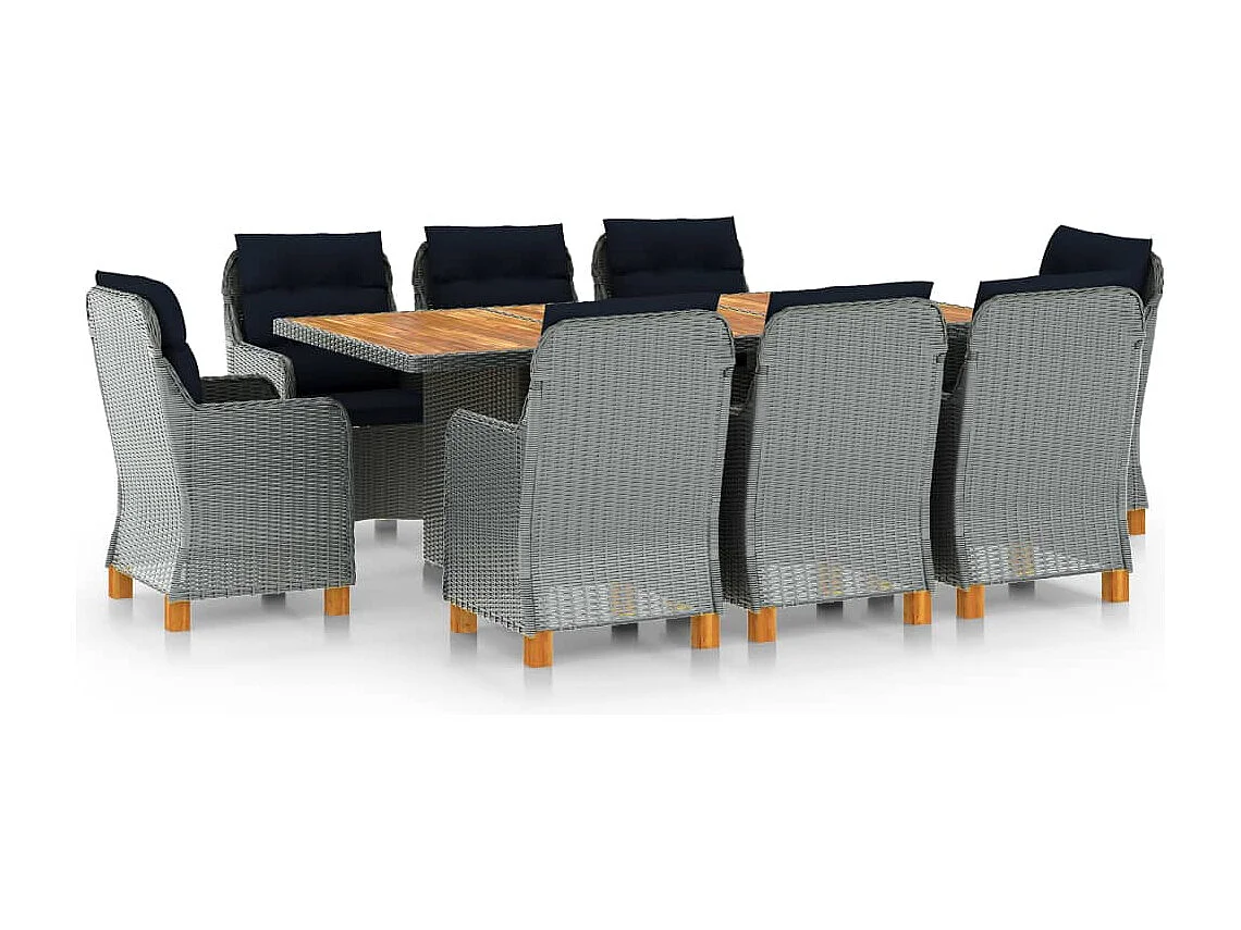 Ensemble à manger d'extérieur et coussins 9 pcs résine tressée