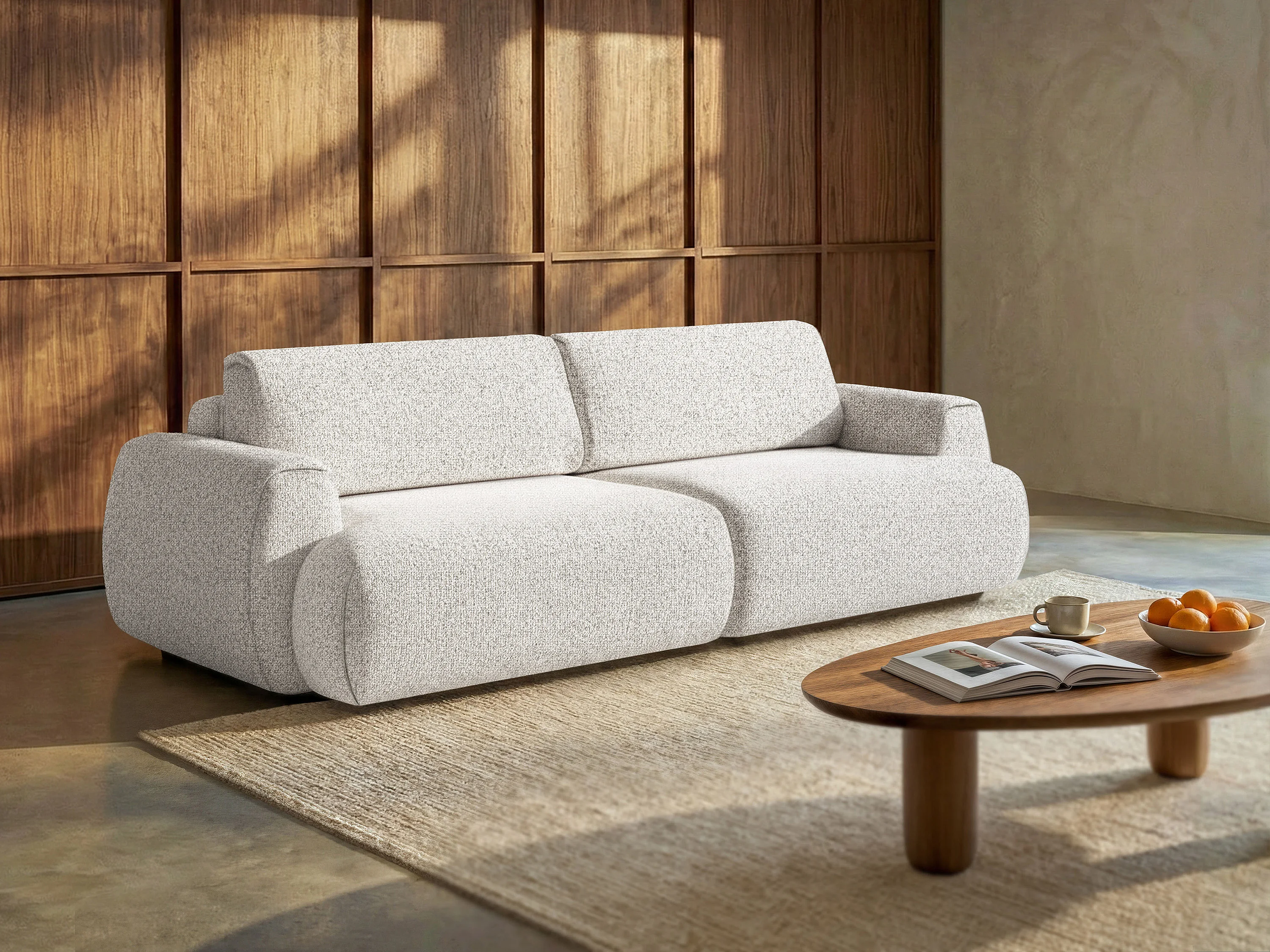 Canapé 4 places convertible en tissu chiné gris clair MONELIA