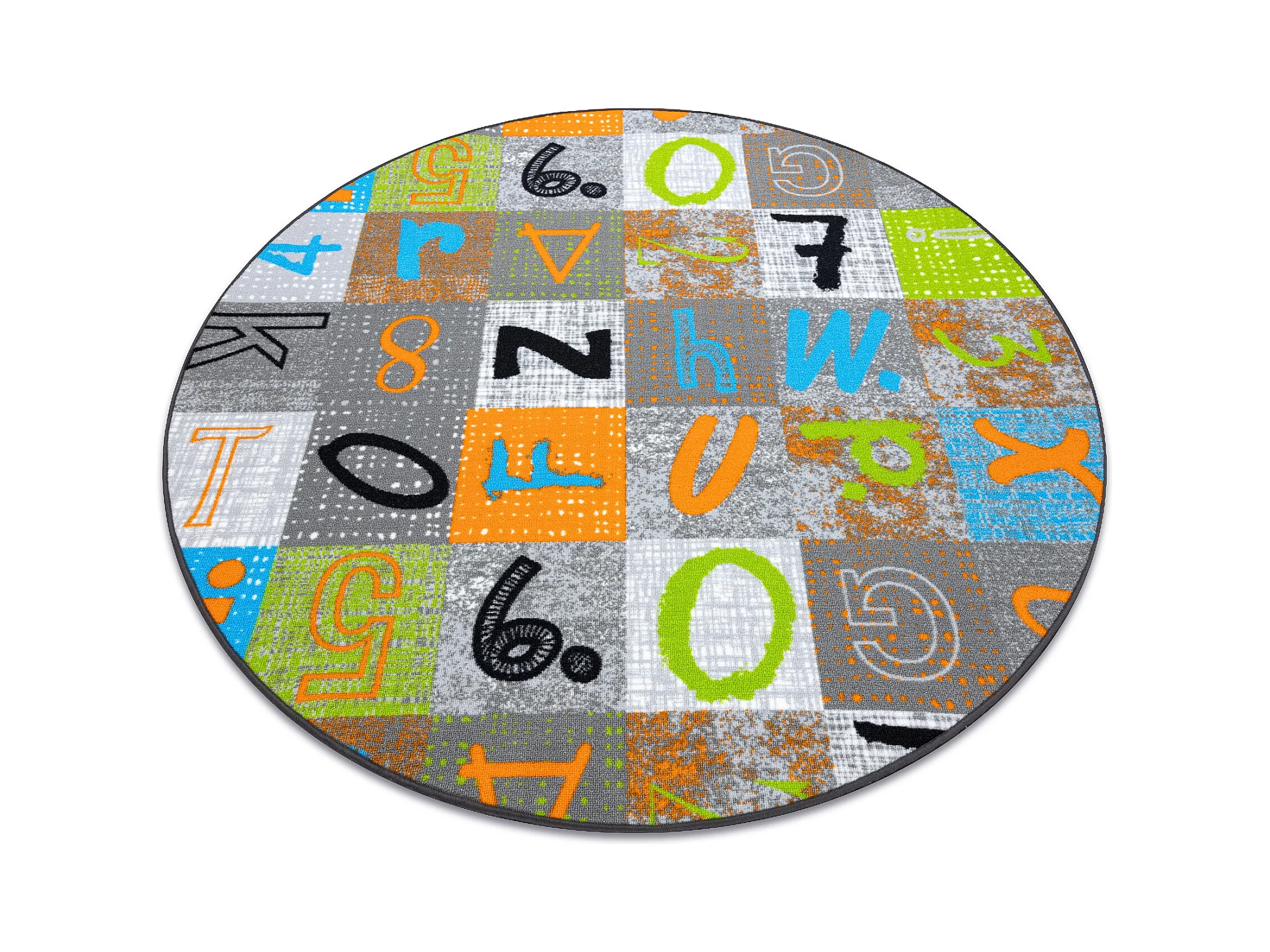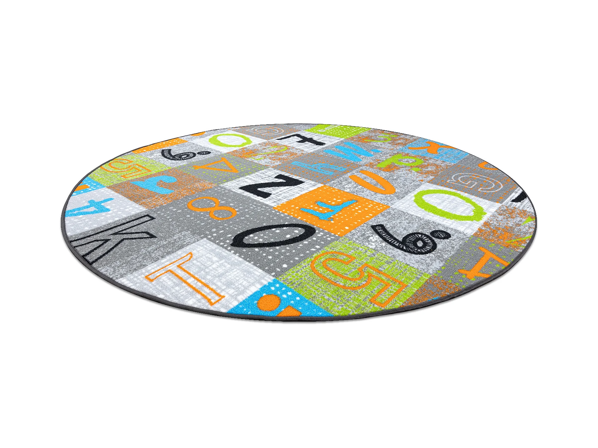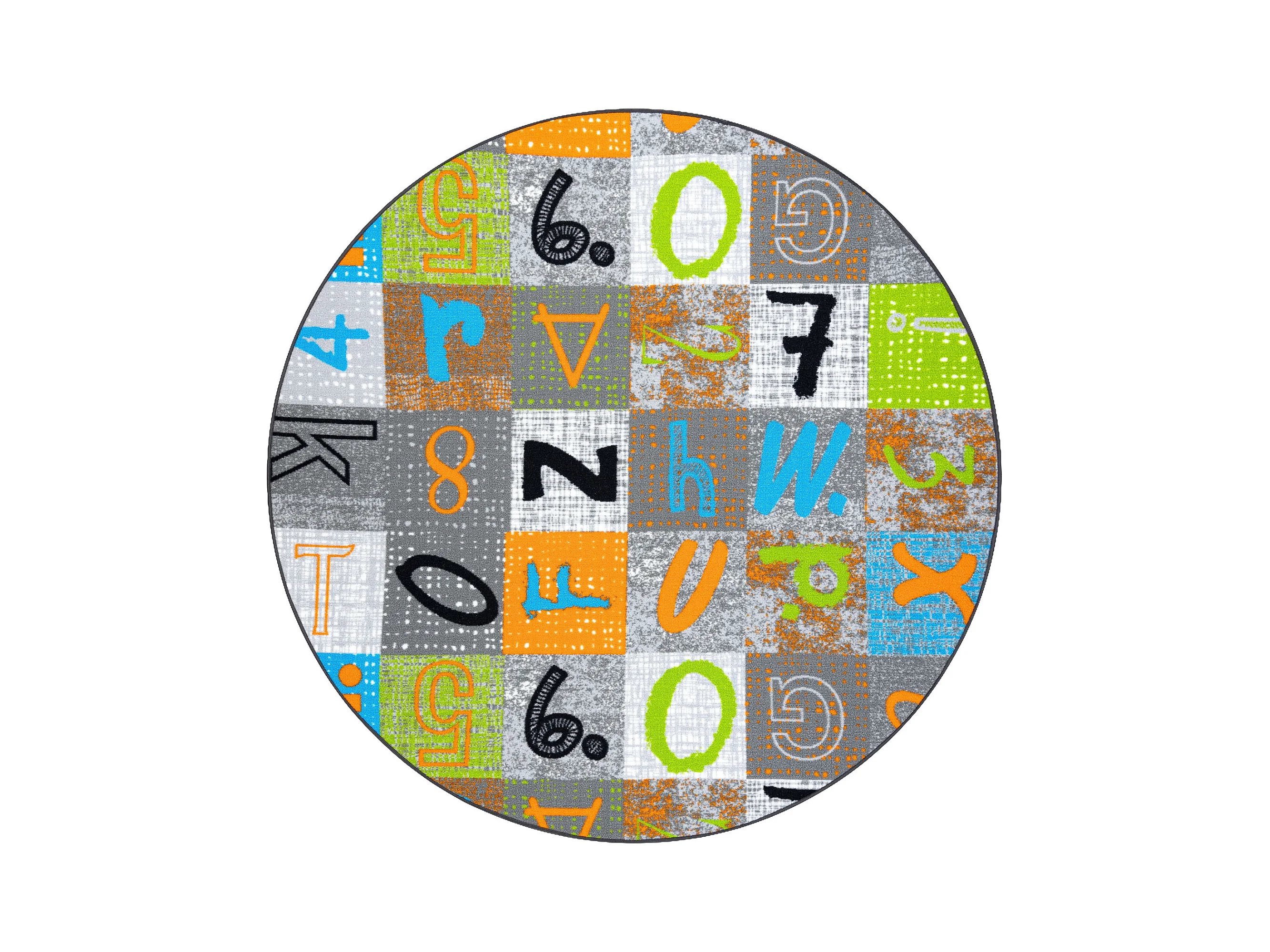 Moquette pour enfants JUMPY cercle Patchwork, Lettres, Chiffres gris / cercle 133 cm