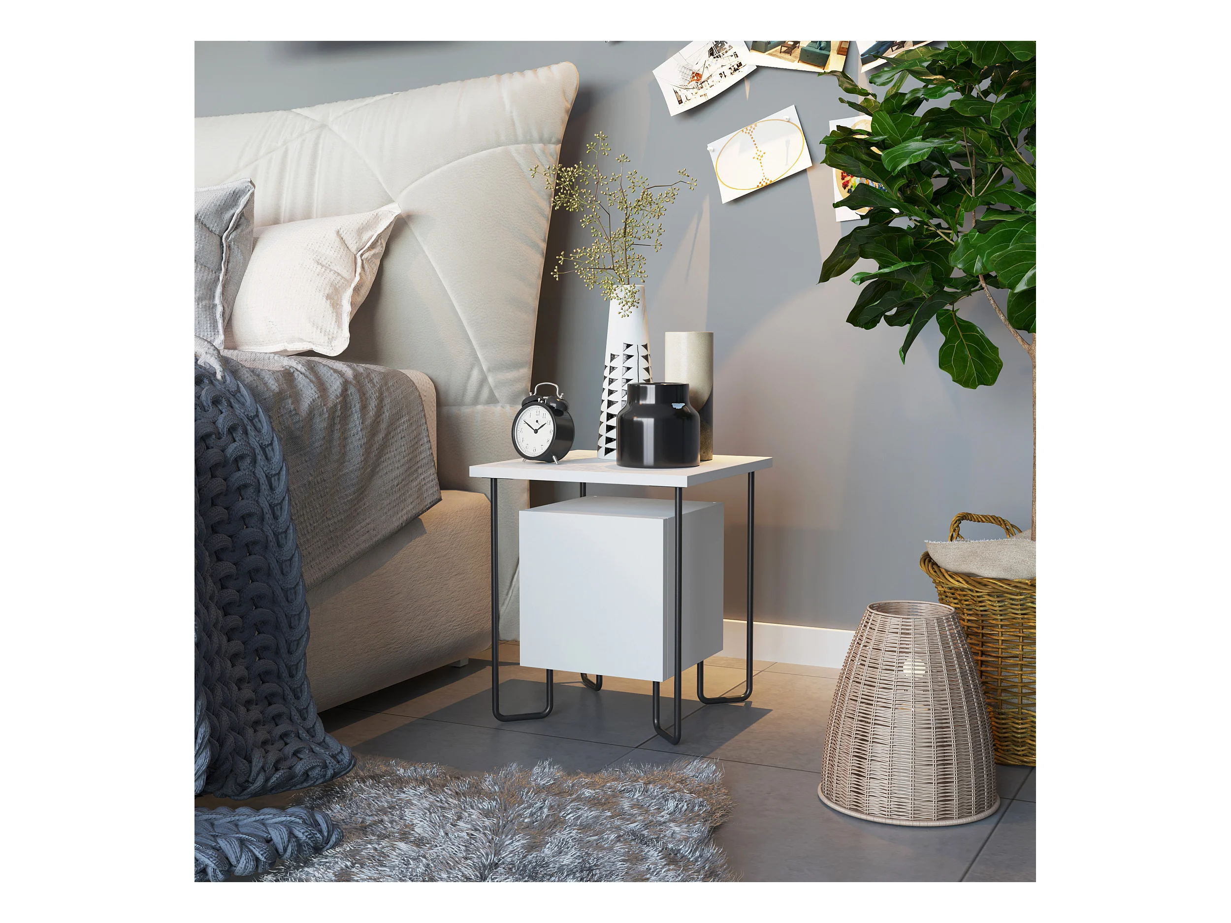 Table de chevet ACRES blanc, 45x40x40