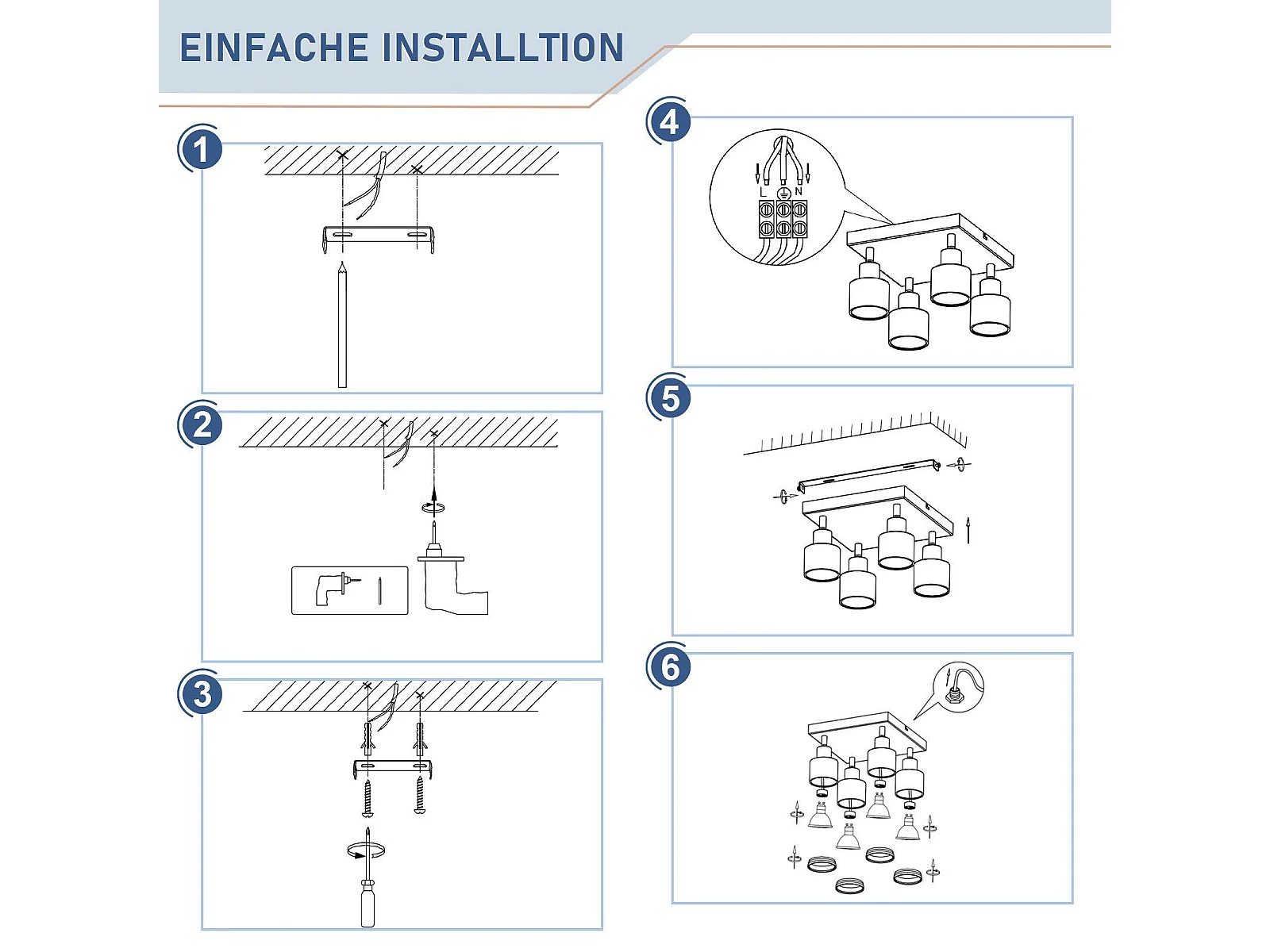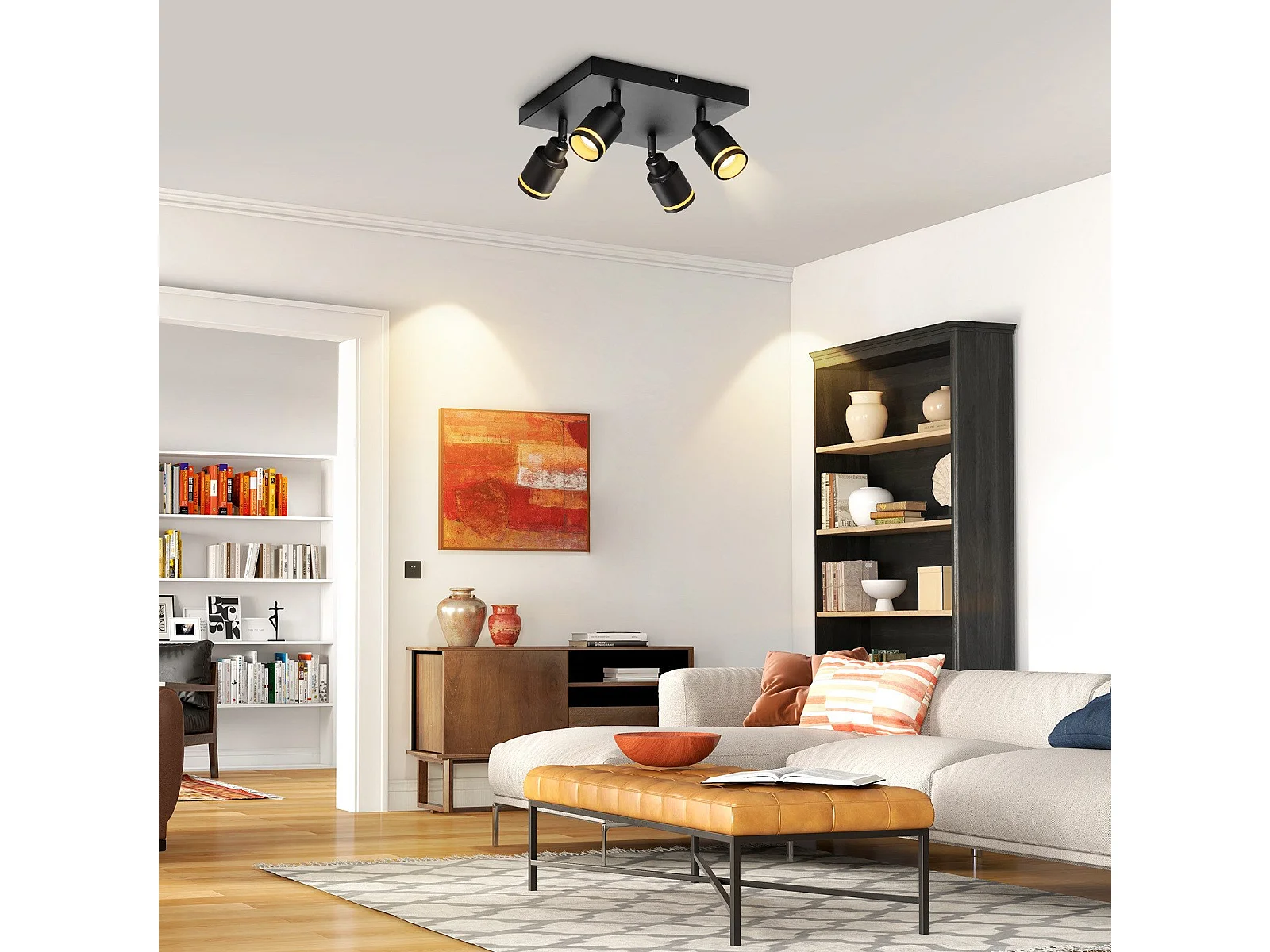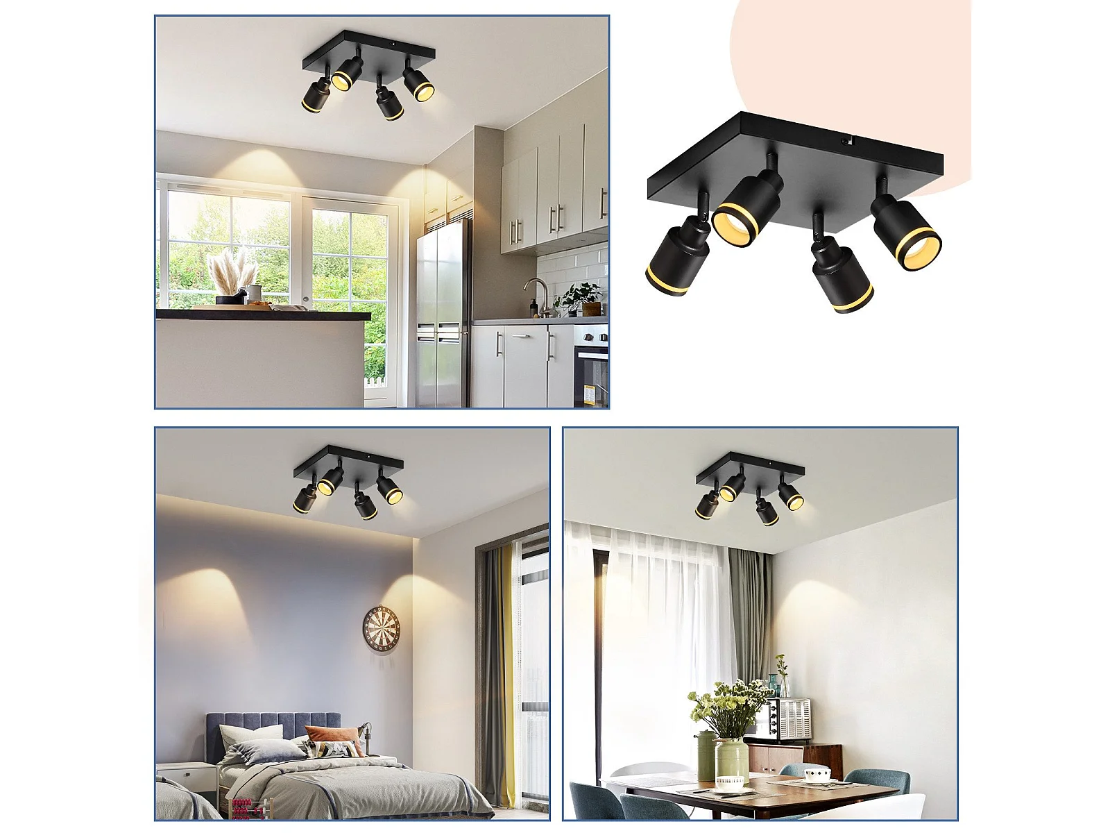NETTLIFE Plafonnier LED 4 Spots de plafond : modèles carrés plafonnier noirs Spot mural orientable GU10 intérieur métal, sans ampoule
