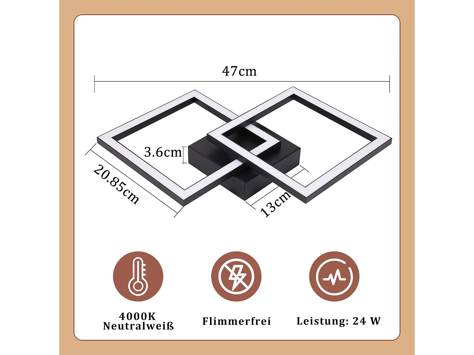 NETTLIFE Plafonnier LED Carré Noir 24 W 4 000 K Blanc Neutre Lampe De Cuisine Moderne