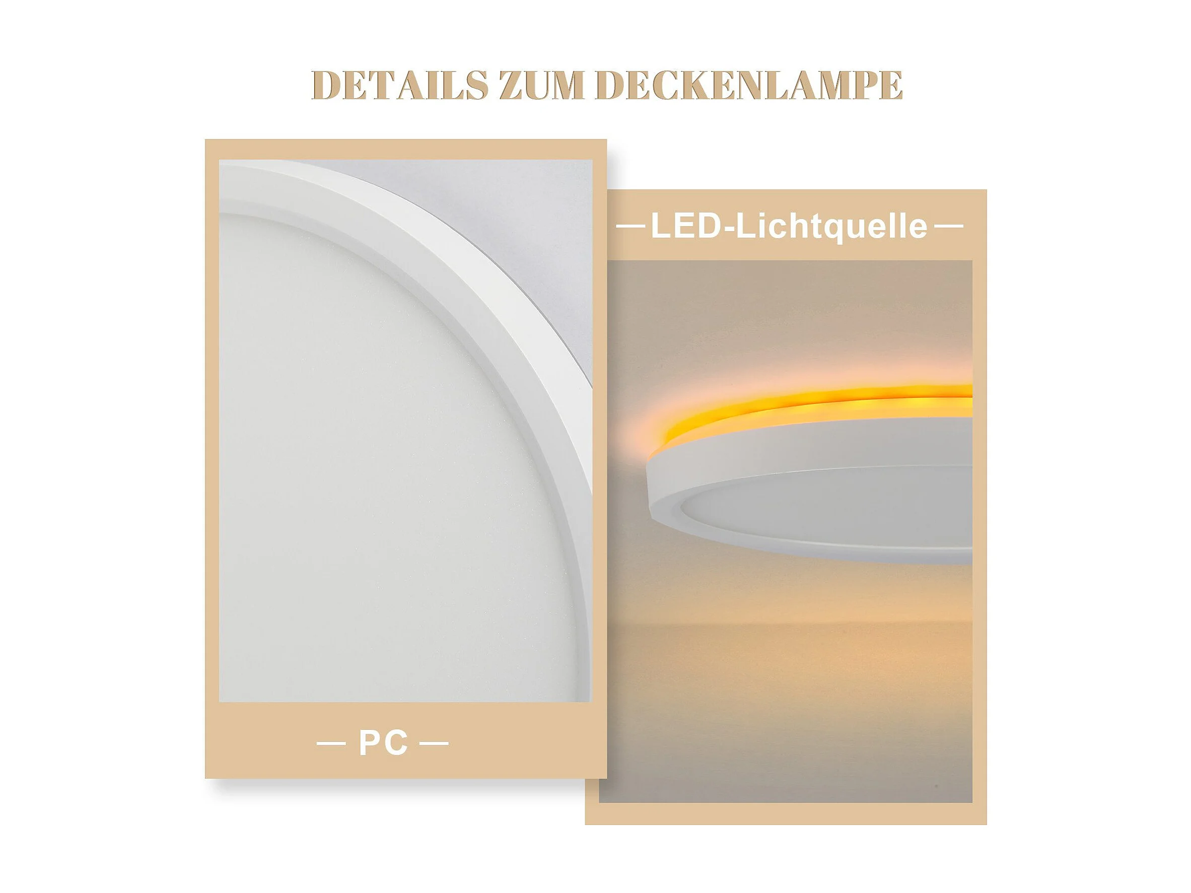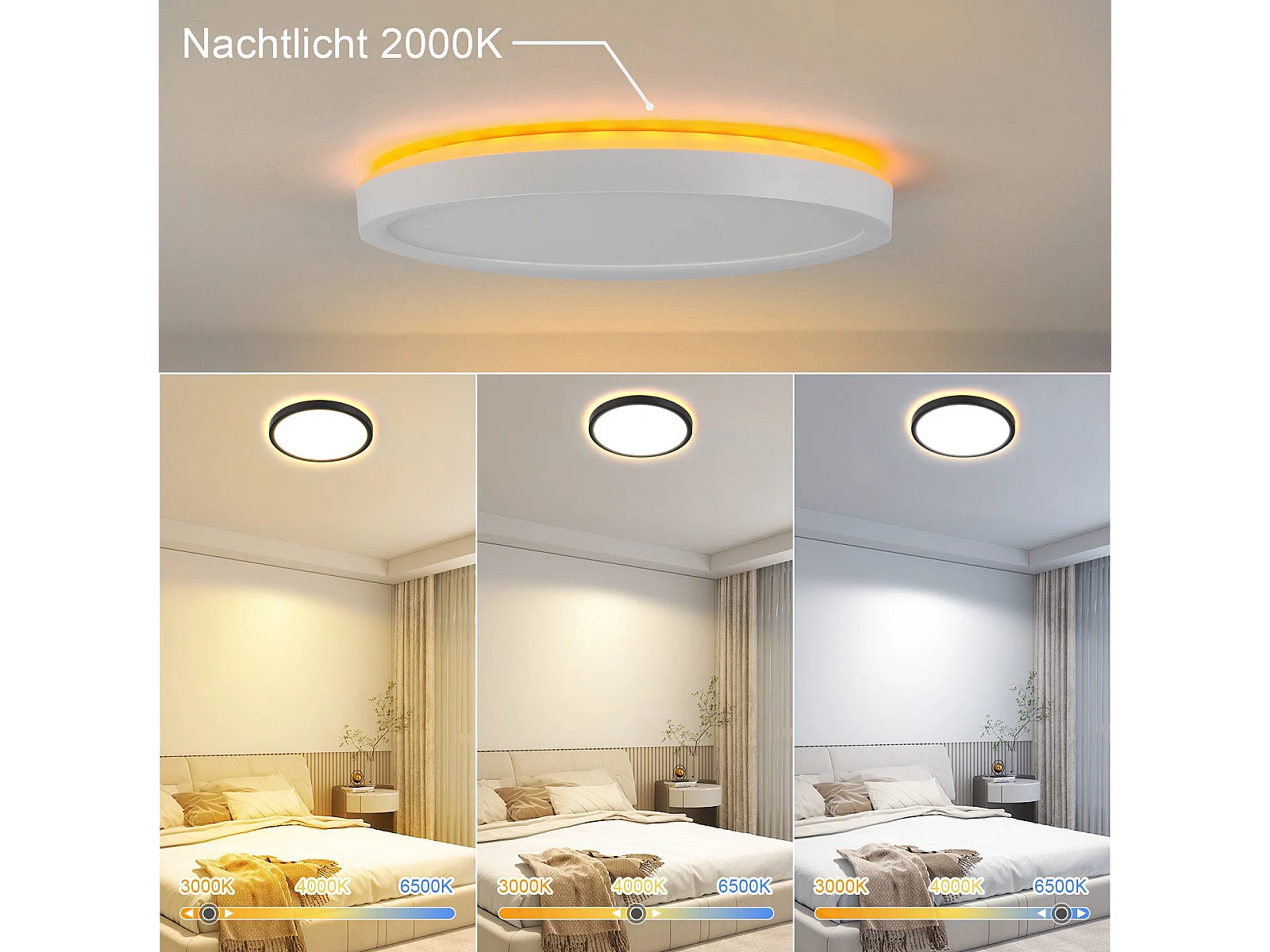 NETTLIFE Plafonnier LED Plat 22cm 18w à Intensité Variable Pour Chambre Cuisine 3000k - 6500k