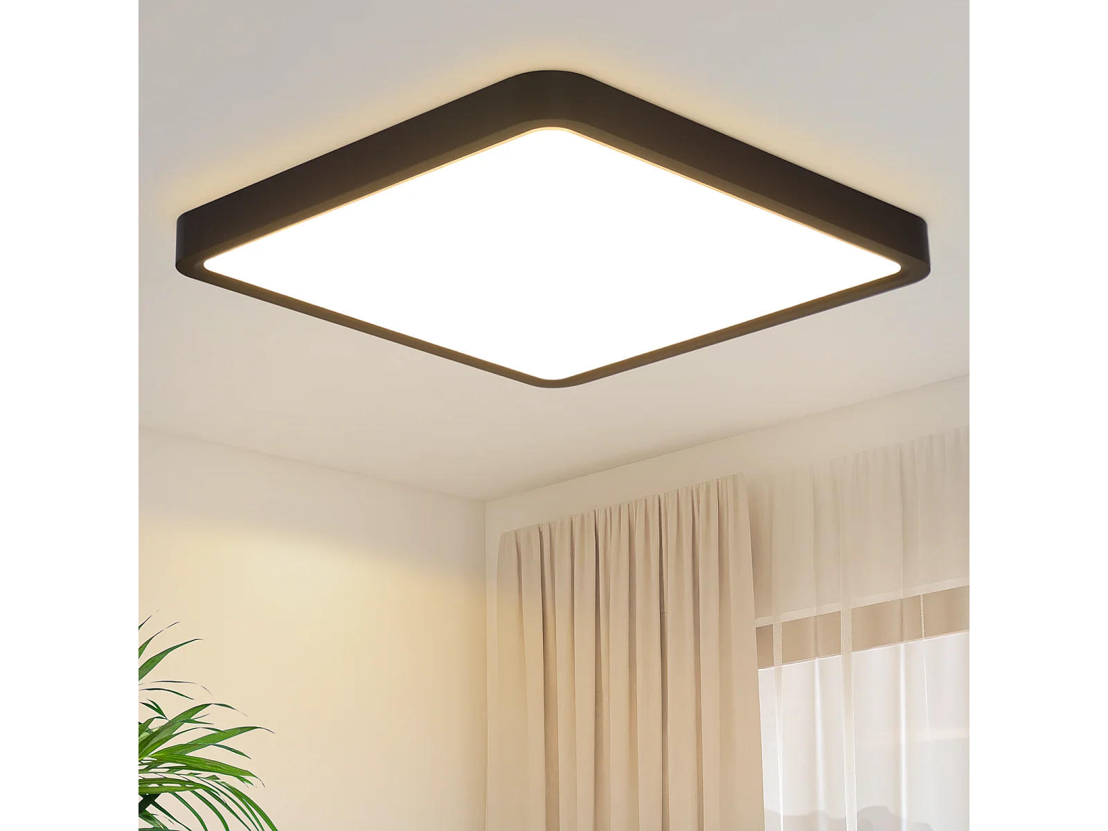 NETTLIFE Plafonnier LED plafonnier lampe de chambre plate 23CM 18W carré noir 3000K