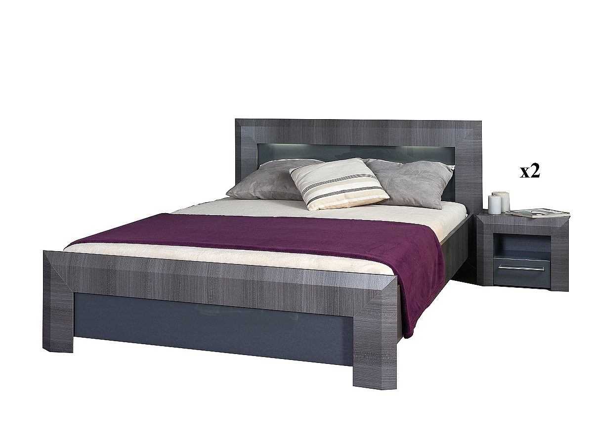 Pack CHAMBRE BRITANY - lit 140 x 190 cm + 2 chevets - Finition aspect orme gris