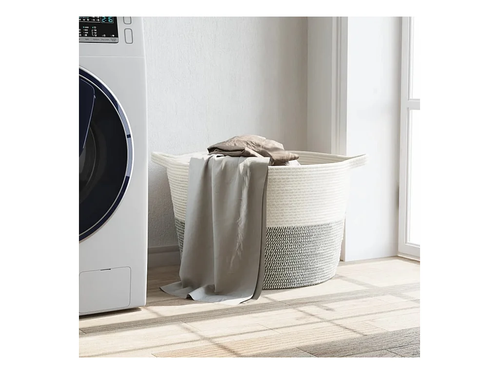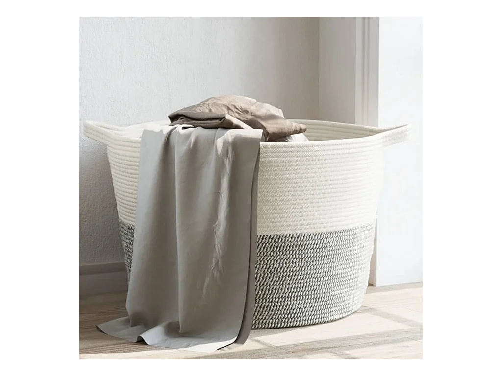 Panier à linge gris et blanc Ø60x36 cm coton