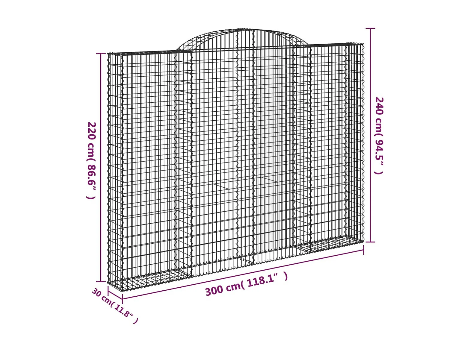 Paniers à gabions arqués 4 pcs 300x30x220/240 cm fer galvanisé