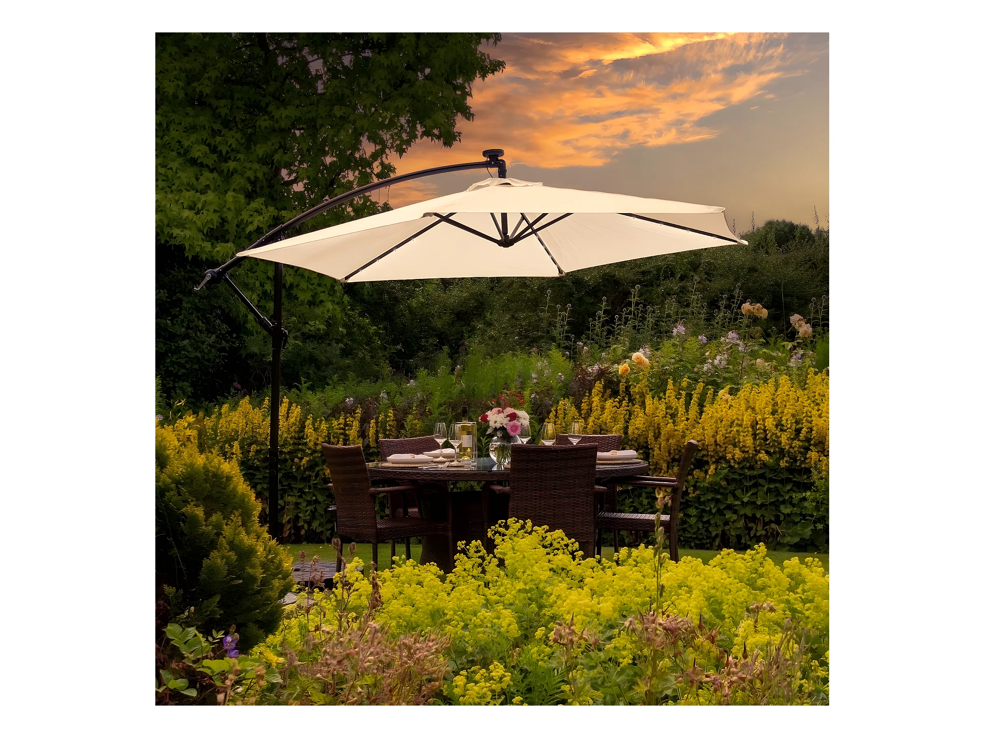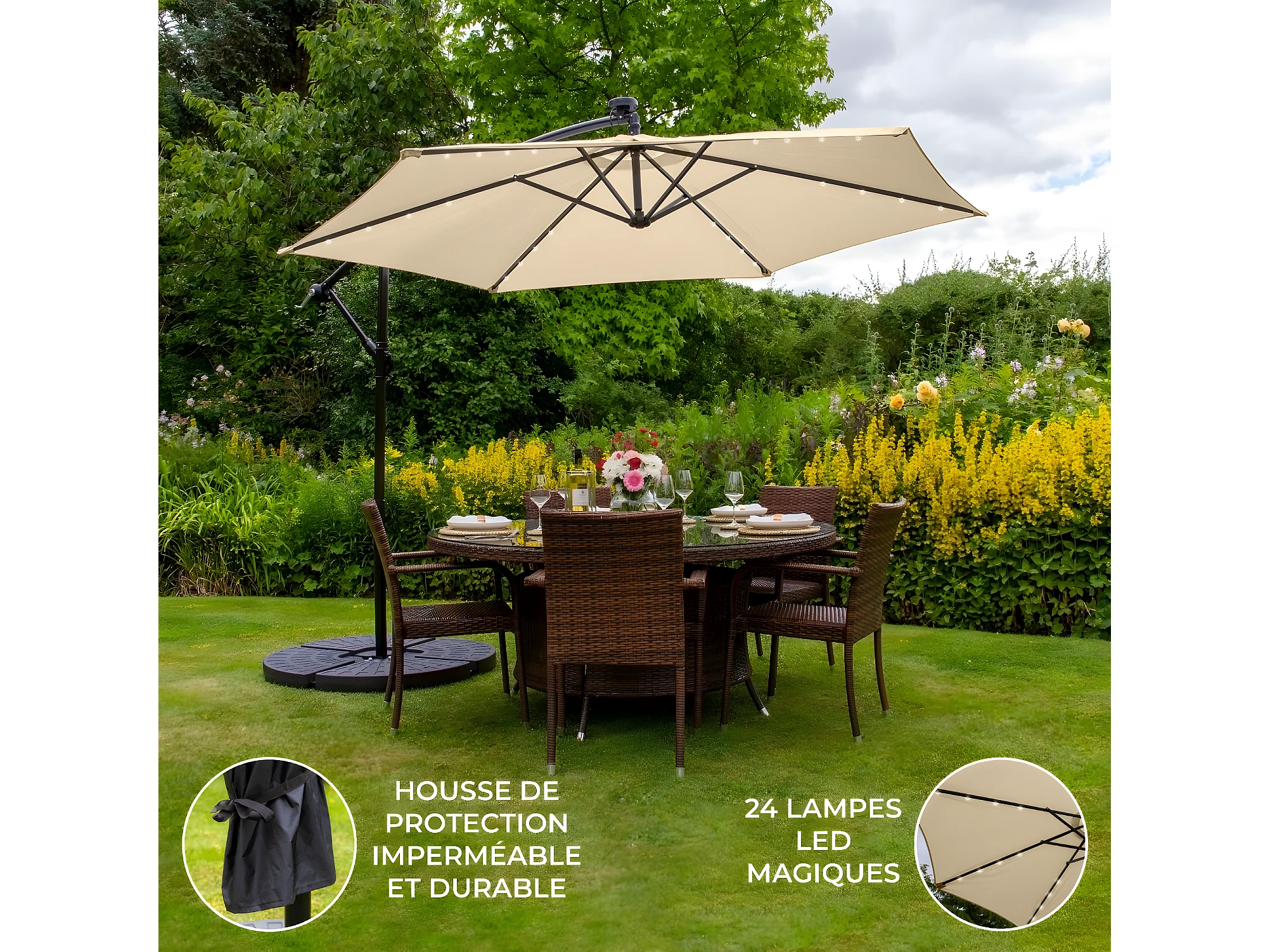 Parasol Beige 3m avec LED's Intégrés avec Base Ronde