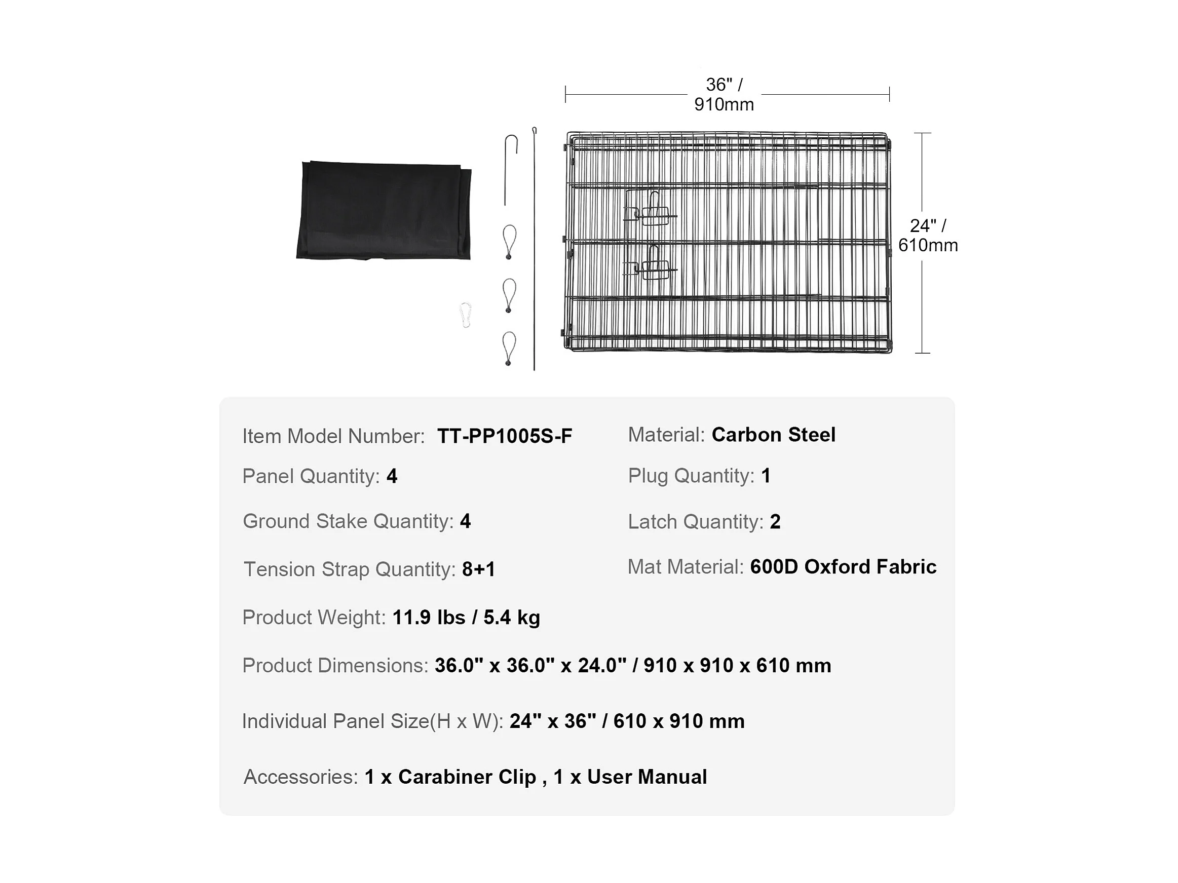 Parc pour Chien SucceBuy Parc pour Chien, Parc d'Exercice Pliable en Métal à 4 Panneaux avec Coussin Inférieur, 91.44 cm