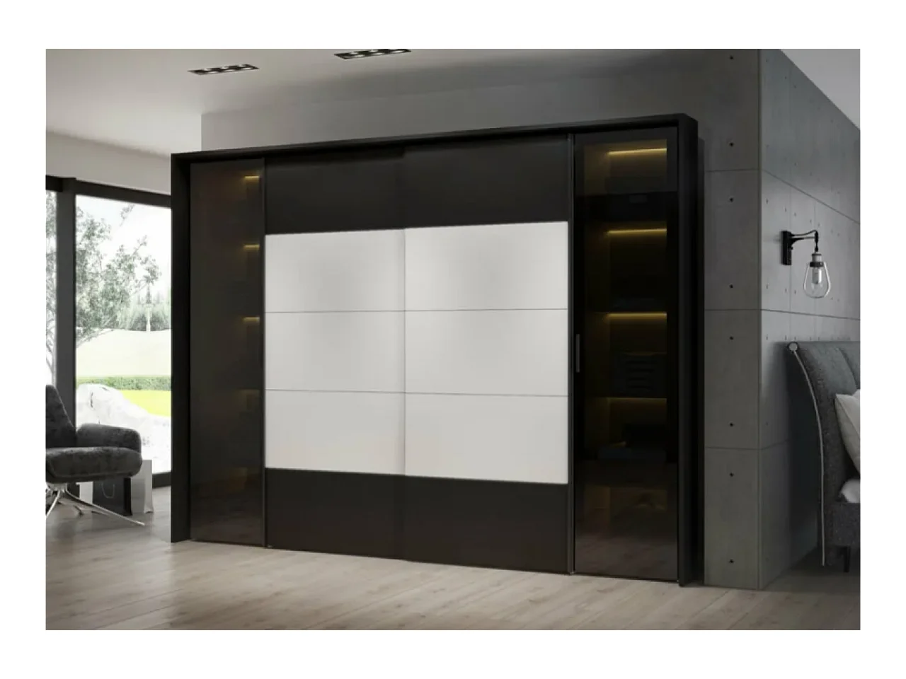 Armoire Liam (180cm)/Portes coulissantes/Noir&Blanc