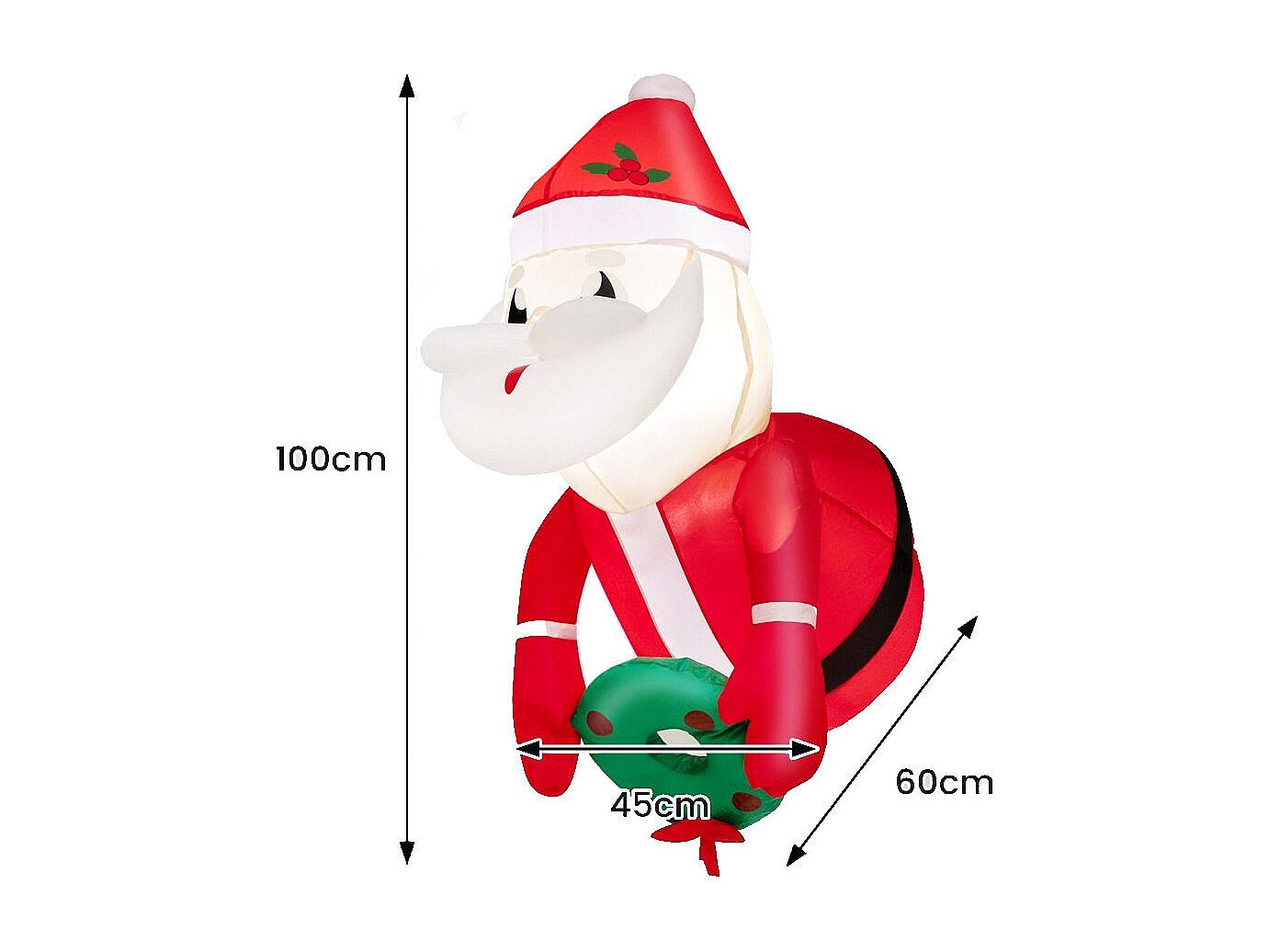 Père Noël Gonflable 100CM - Décoration Fenêtre de Noël Gonflable - 2 Lumières LED Intégrées 3Ventouses