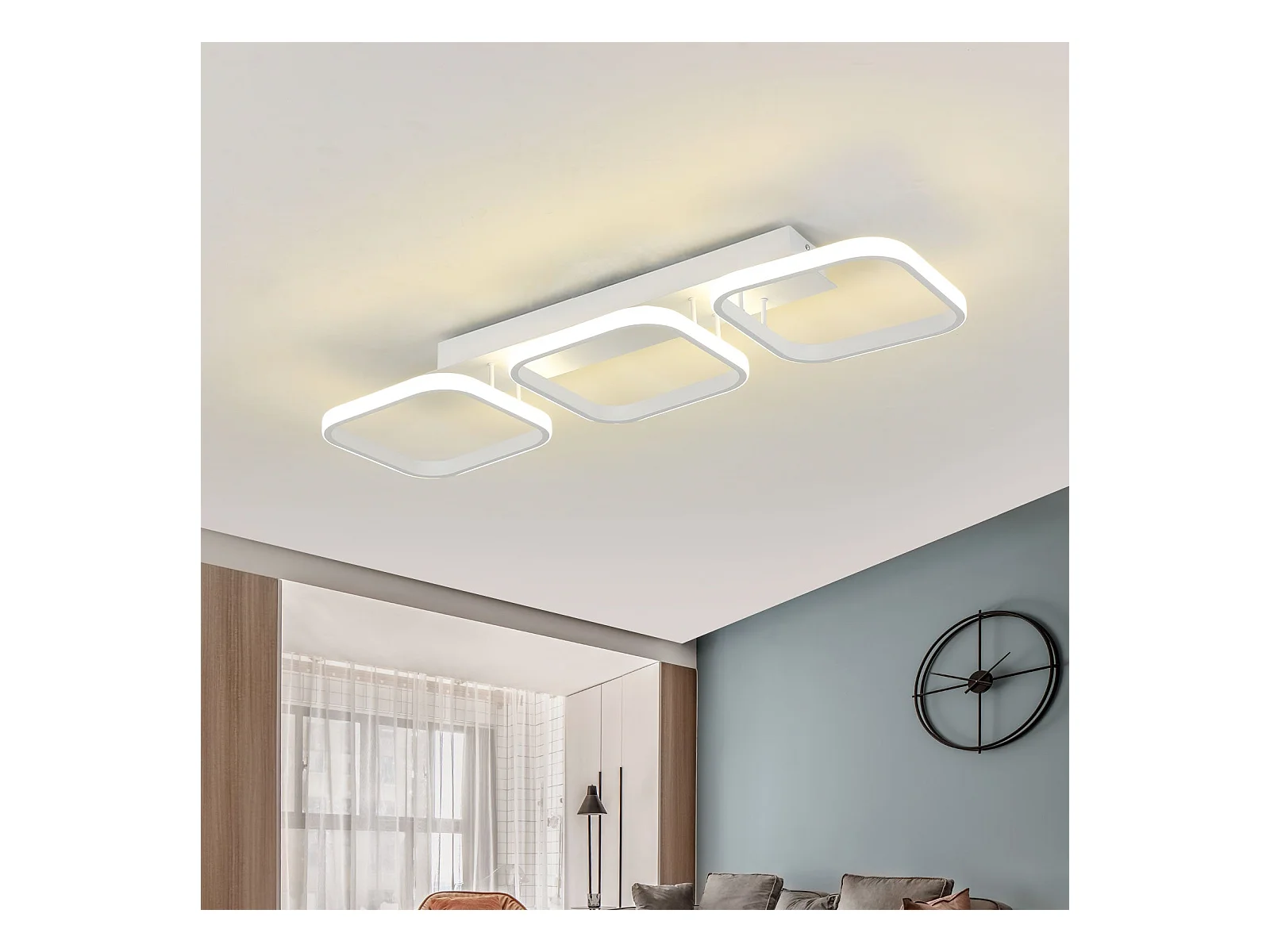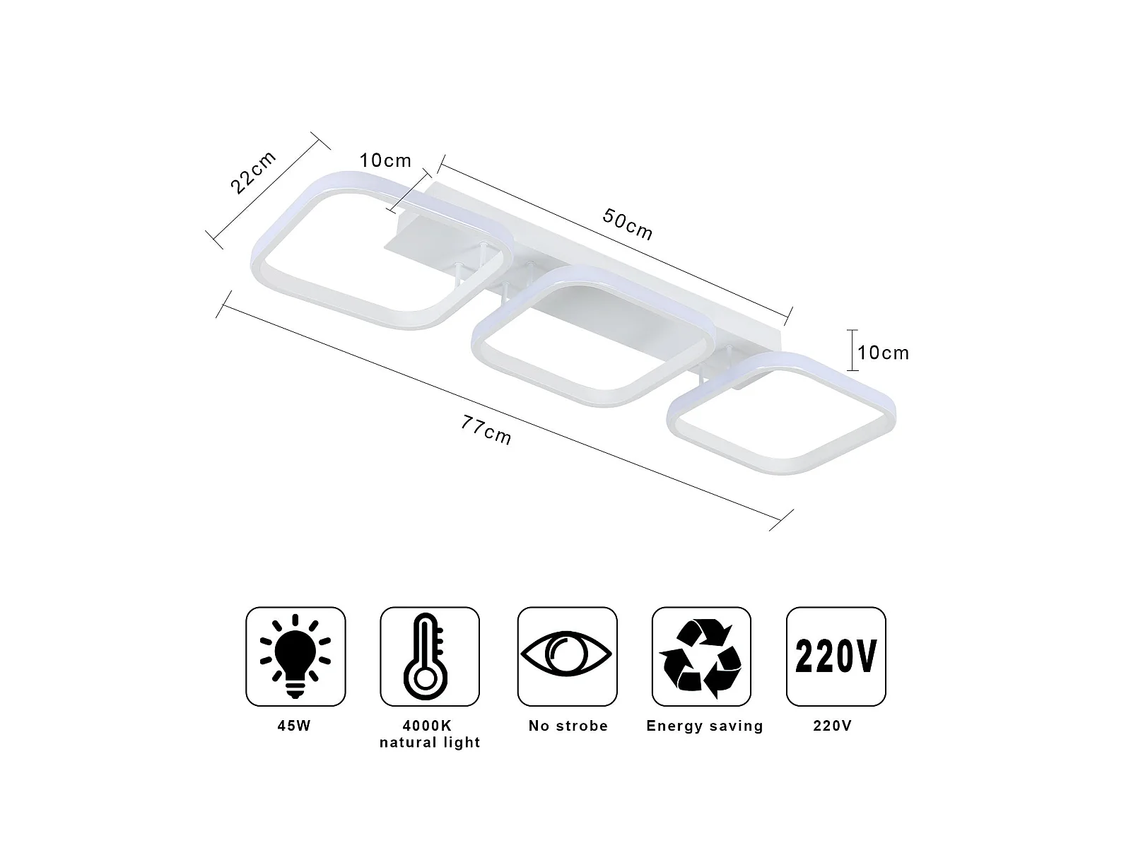 Plafonnier led 45w géométrique simple carré, 78*22cm, blanc, en métal, lumière neutre