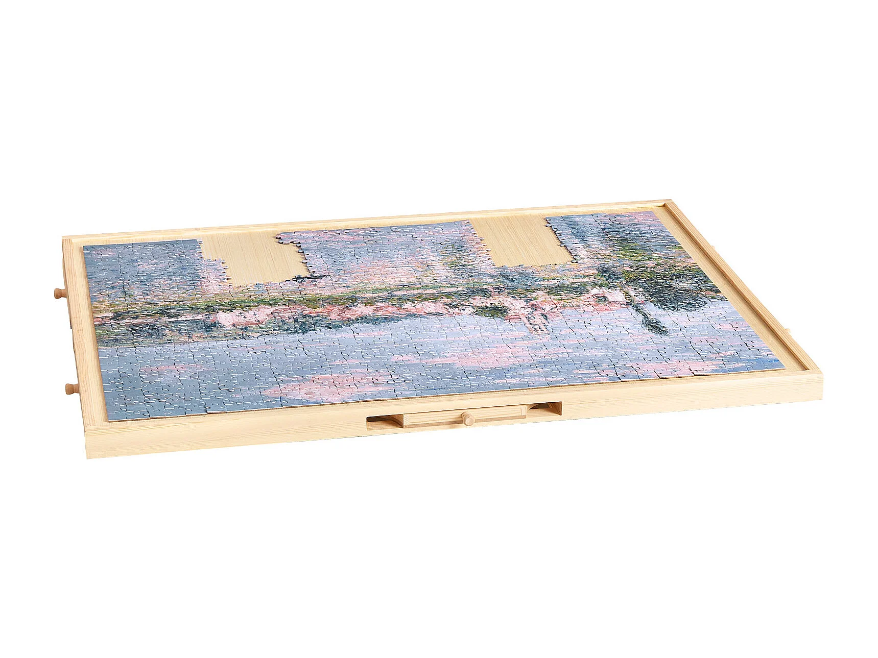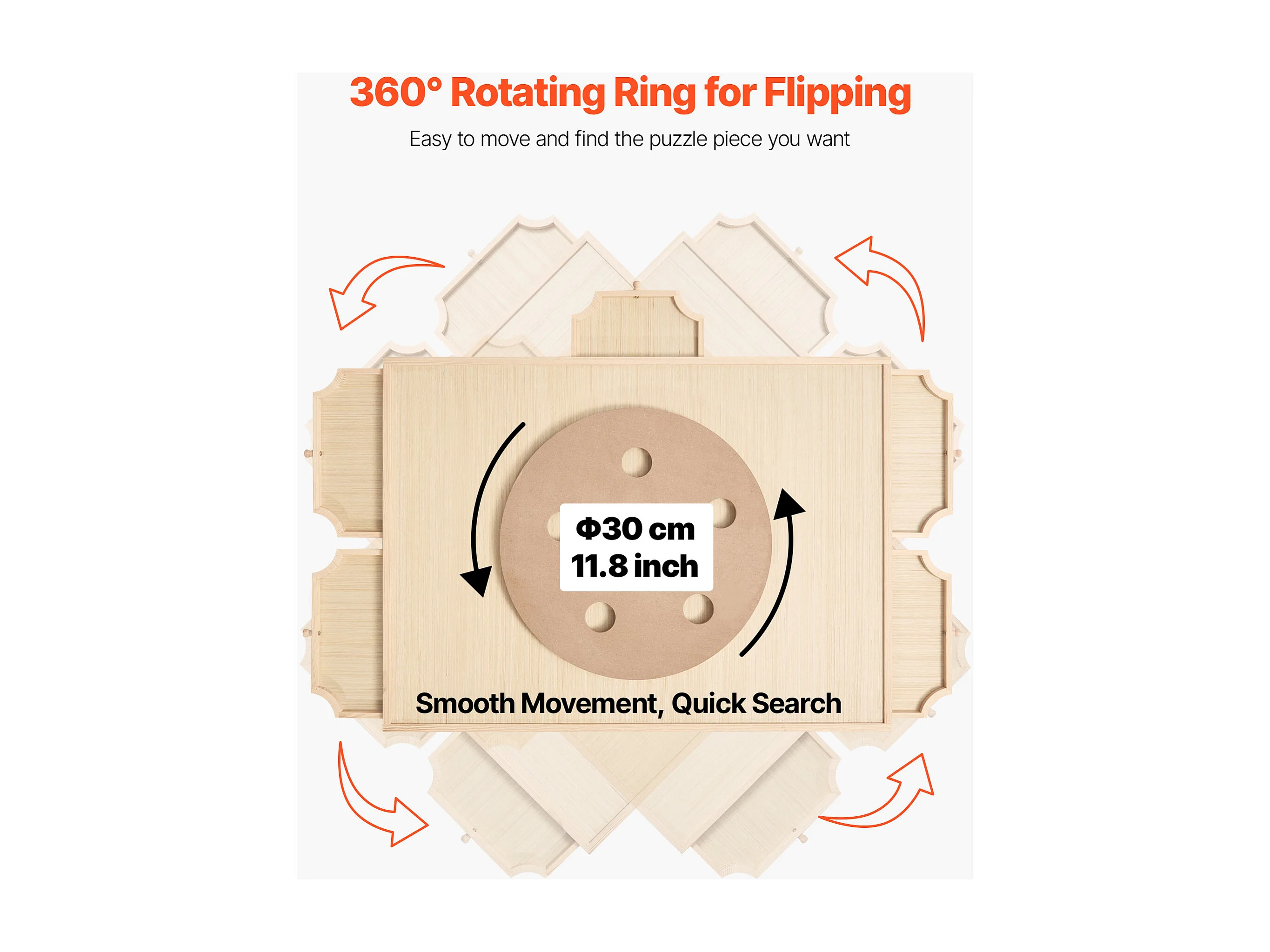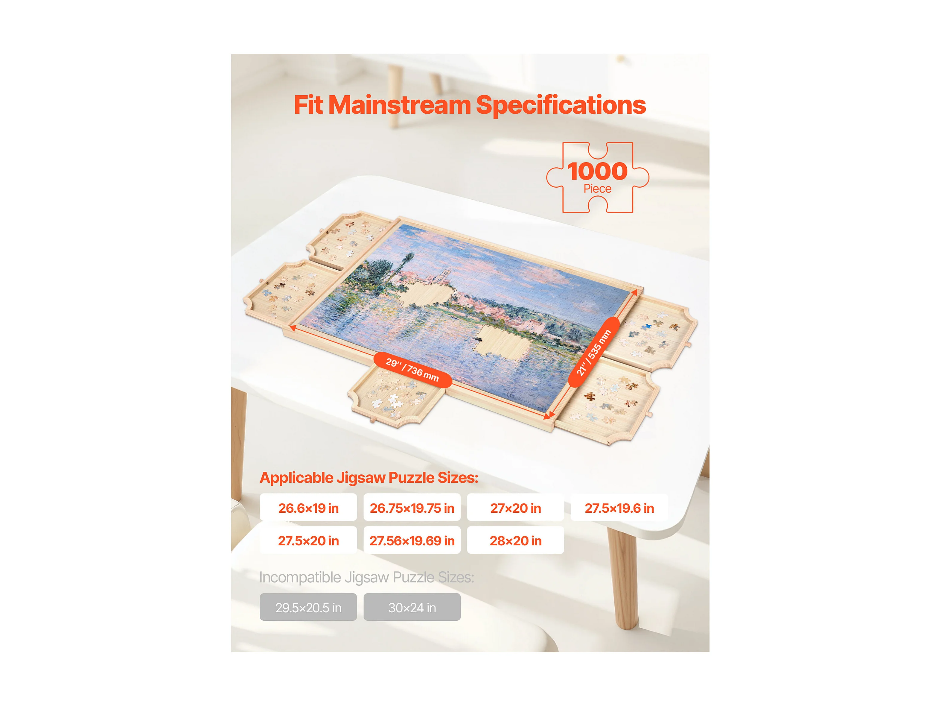 Planche de Puzzle SucceBuy 1000 Pièces, Table de Puzzle en Bois 73.6 x 53.5 cm, Plateau Casse-tête Rotatif à 360° et Portable, avec 5 Tiroirs et Couverture Utile