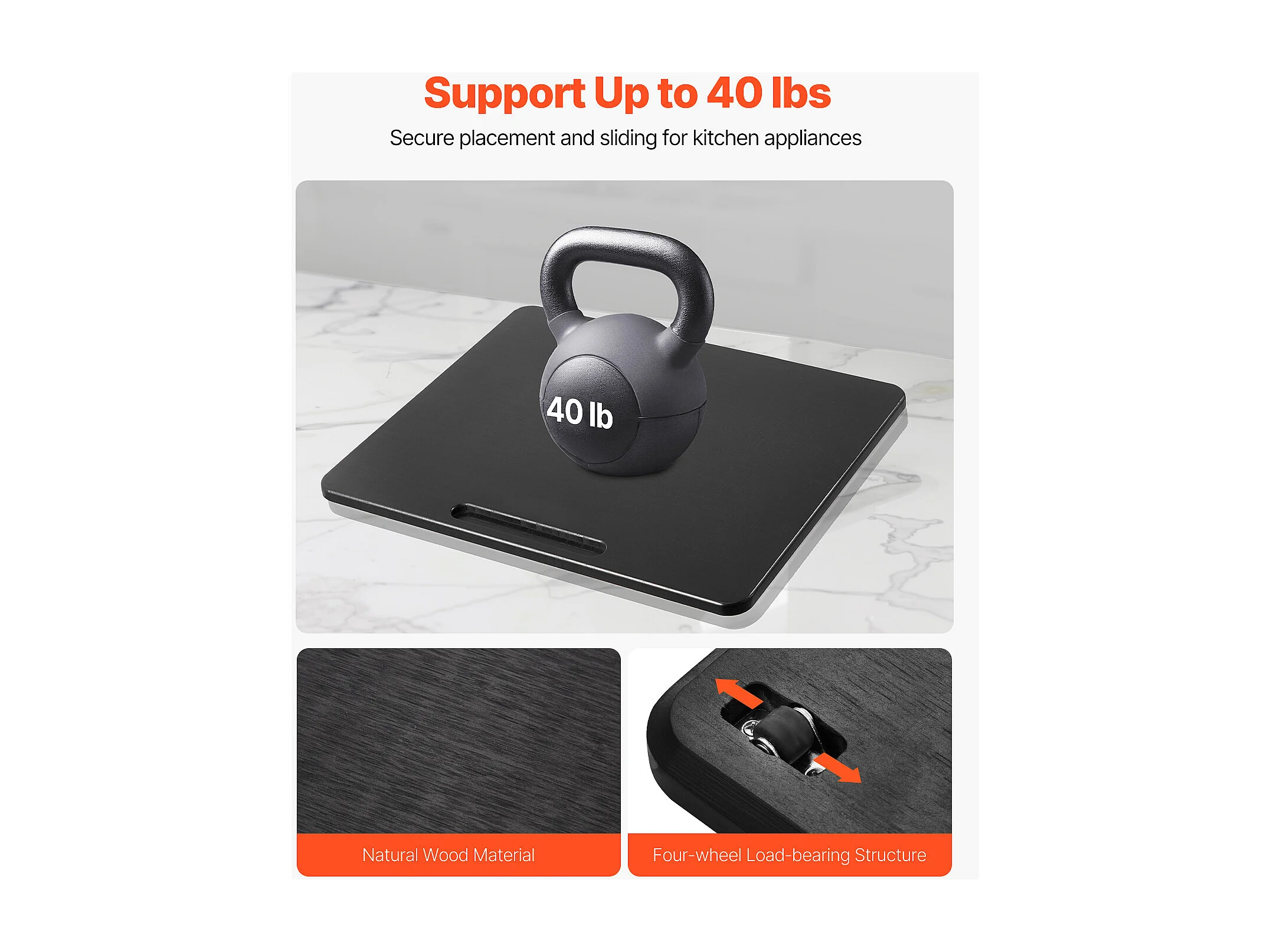 Plateau Coulissant pour Appareils SucceBuy de Cuisine, 33x40,6 cm, Plateau Roulant avec Roulettes en Caoutchouc, pour Petits Électroménagers de Cuisine, Noir