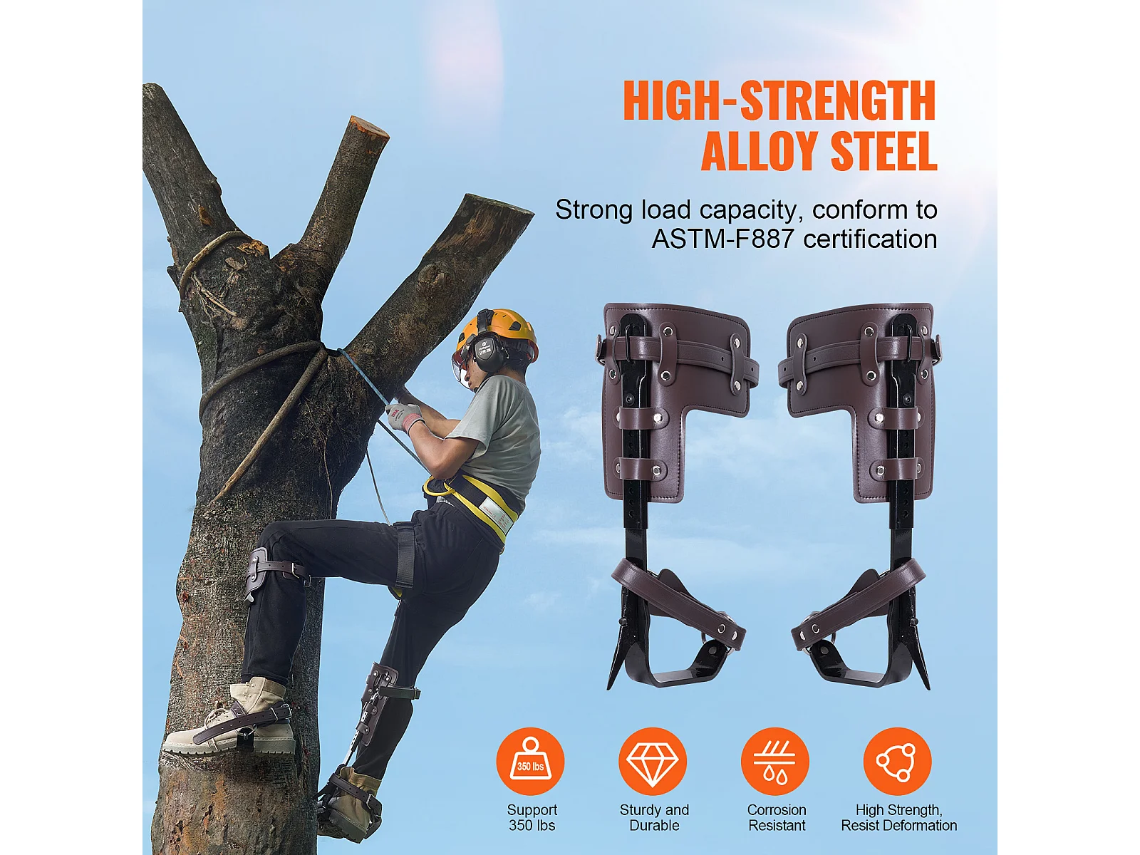 Pointes d'Escalade pour Arbres SucceBuy, Éperons d'Escalade en Acier Allié, Équipement d'Arboriste, Marron