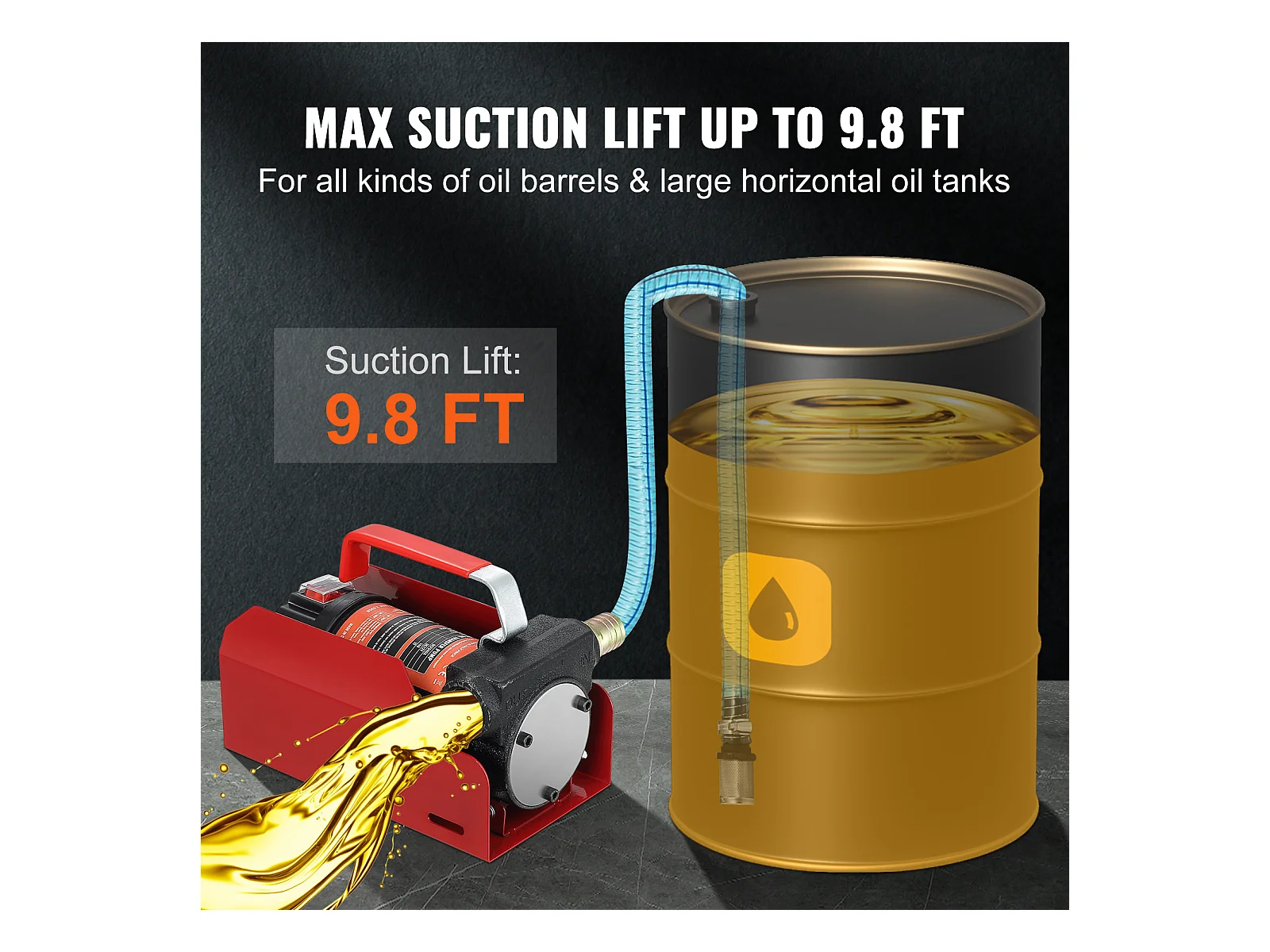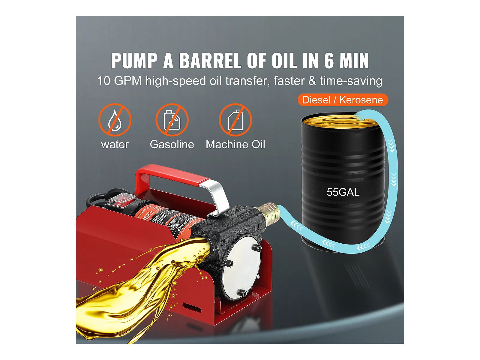 Pompe de Transfert SucceBuy de Carburant Diesel Électrique 12V DC 10GPM Tuyaux de Buse