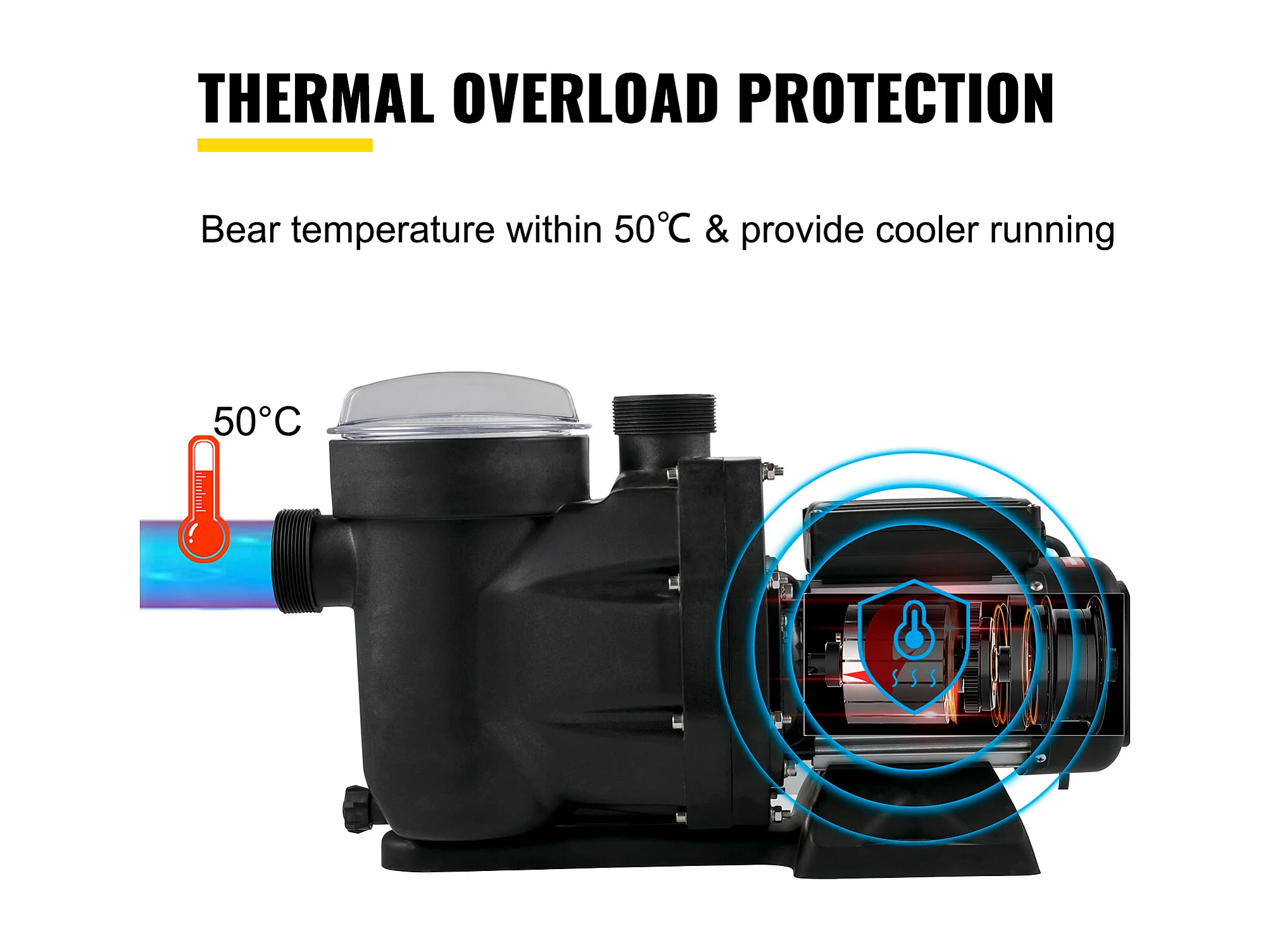 Pompe Piscine Filtration SucceBuy 19200 L/H Pompe Circulation Eau Panier Filtre Amovible 1 HP Pompe Plastique Métal 750W 3450 Tr/Min 50 ℃ 2 Tuyaux Montage