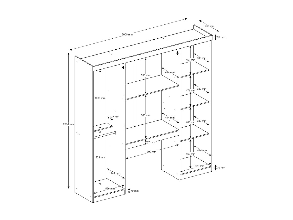 - Dimensions totales : L200 x P46.3 x H206 cm