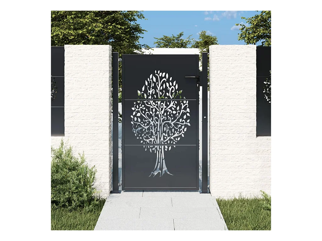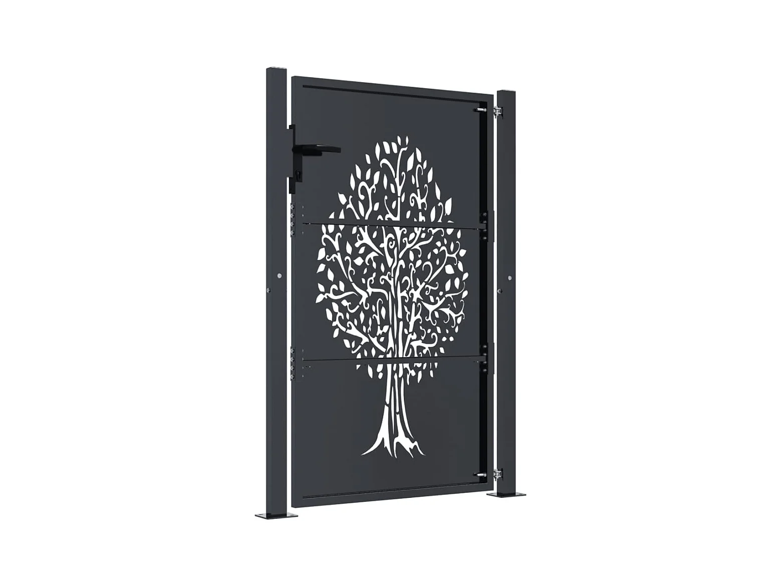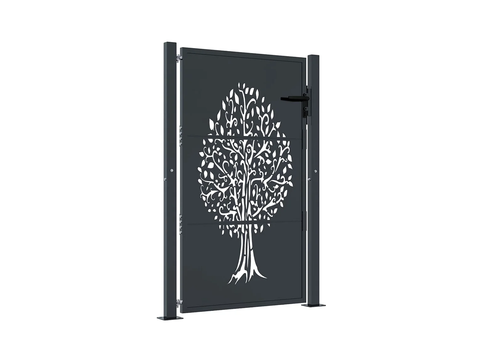 Portail de jardin anthracite 105x130cm acier conception d'arbre