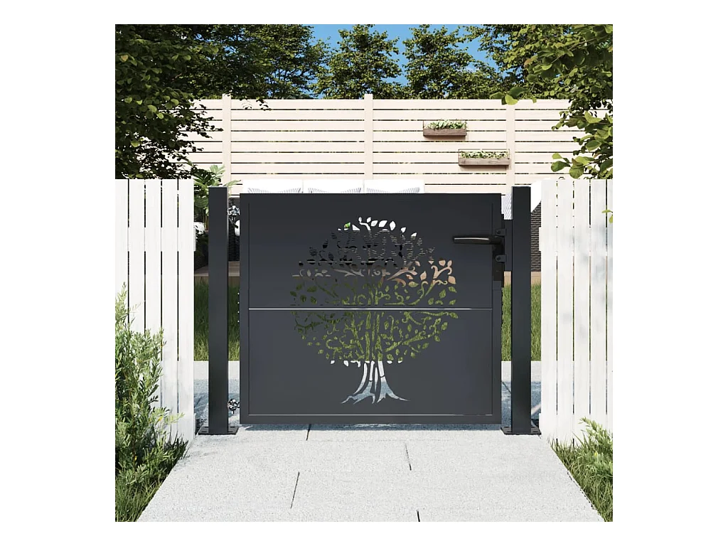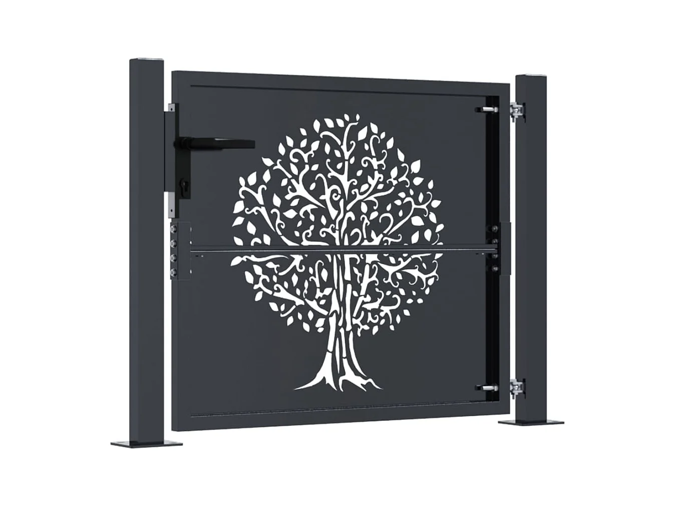 Portail de jardin anthracite 105x80 cm acier conception d'arbre
