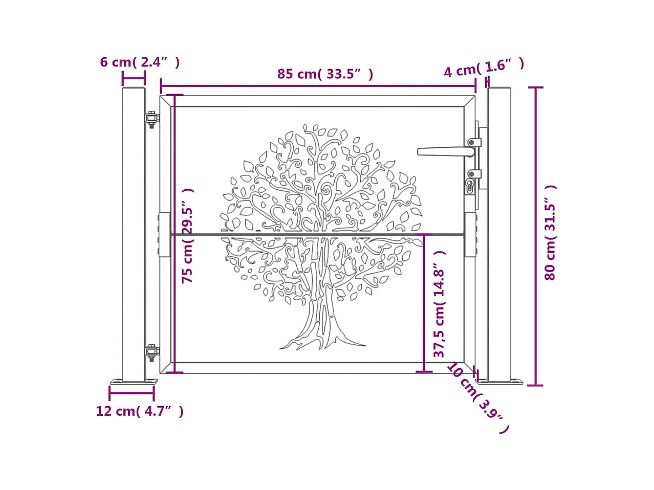 Portail de jardin 105x80 cm acier corten conception de l'arbre