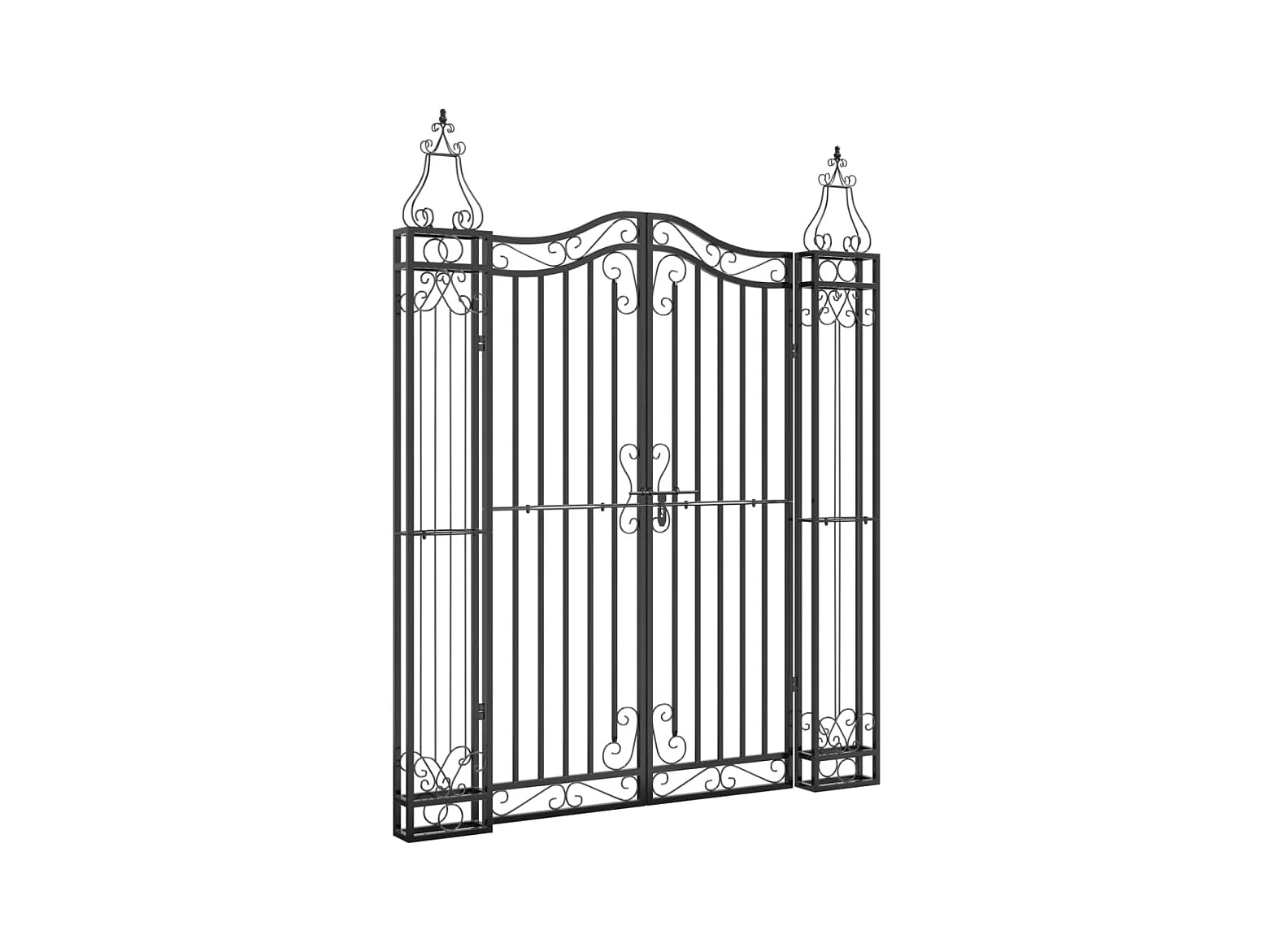 Portail de clôture à dessus arqué et 2 poteaux 105x204 cm Noir