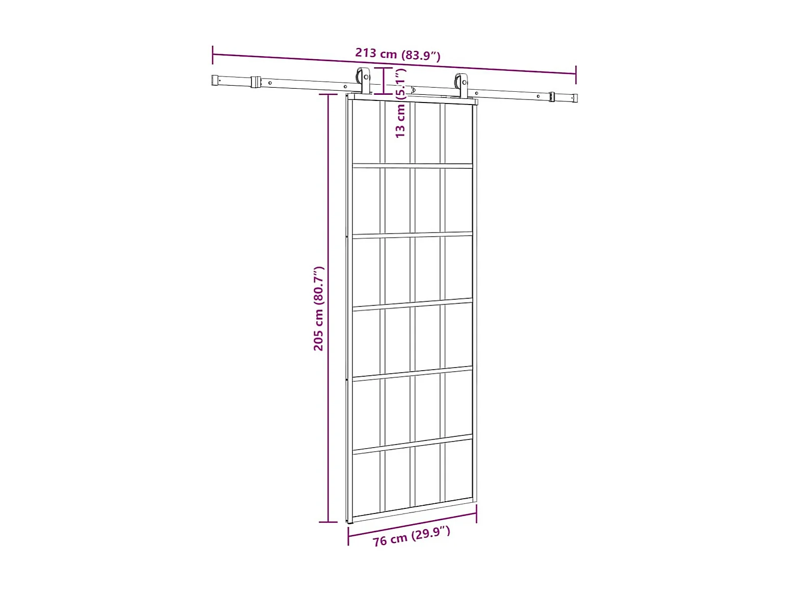 Porte coulissante kit de quincaillerie noir 76x205 cm verre ESG