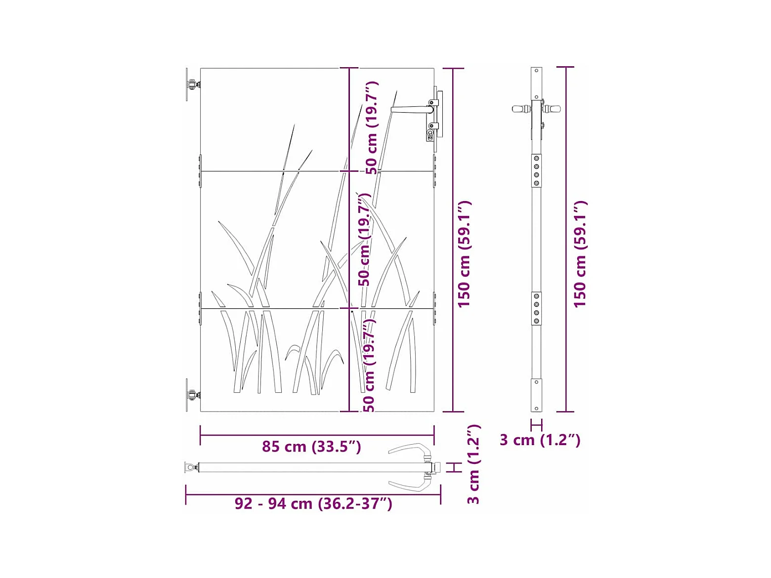 Porte de Jardin Noir 105 x 150 cm Acier peint par poudre