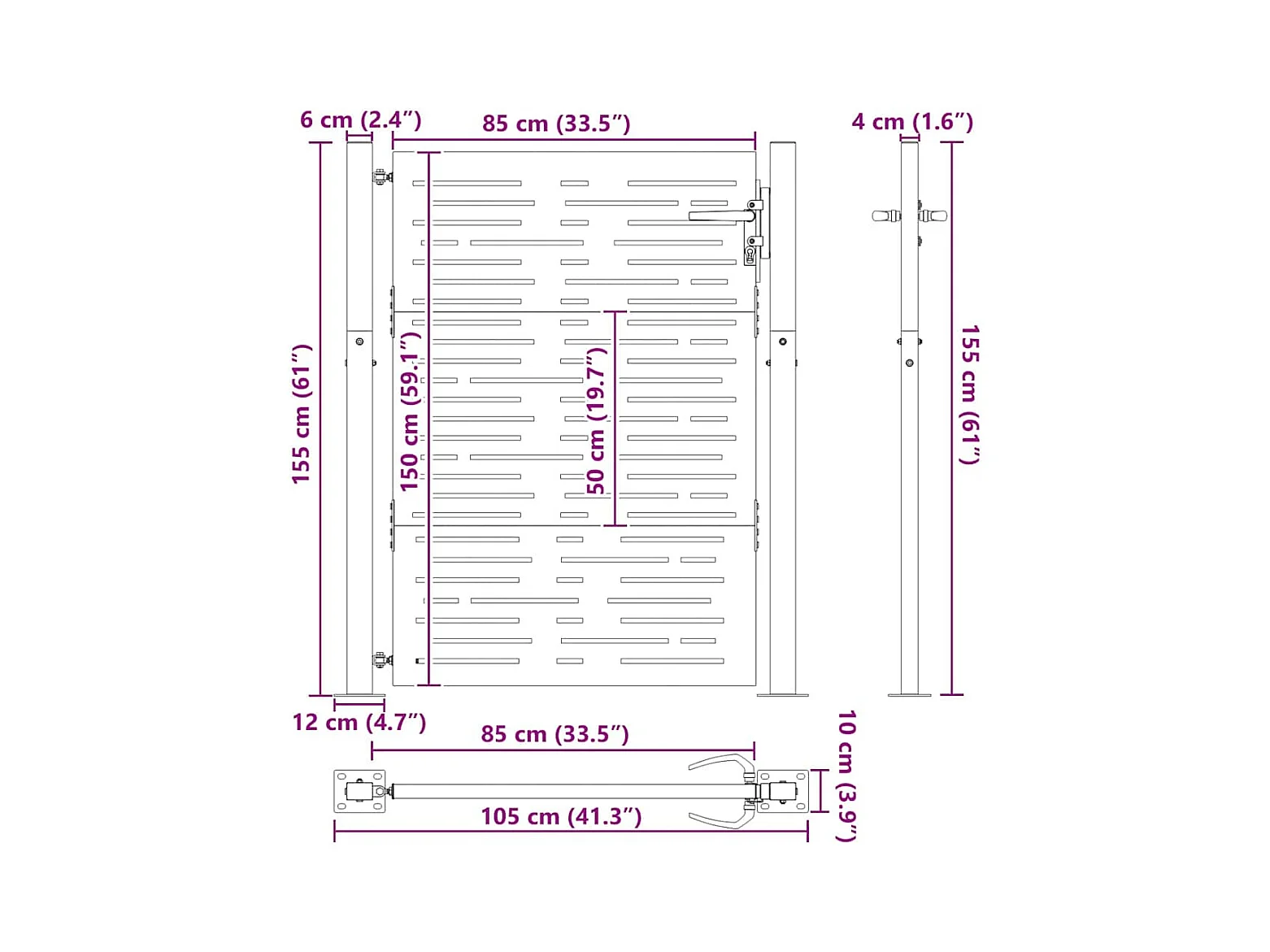 Porte de Jardin, Portail de jardin 85x100 cm design carré en acier corten