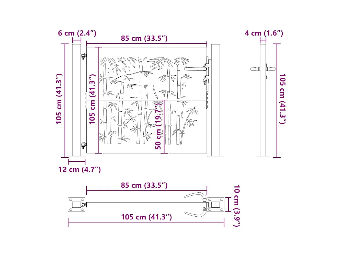 Porte de Jardin, Portail de Jardin 105x75 cm Design en Acier Corten et Bambou