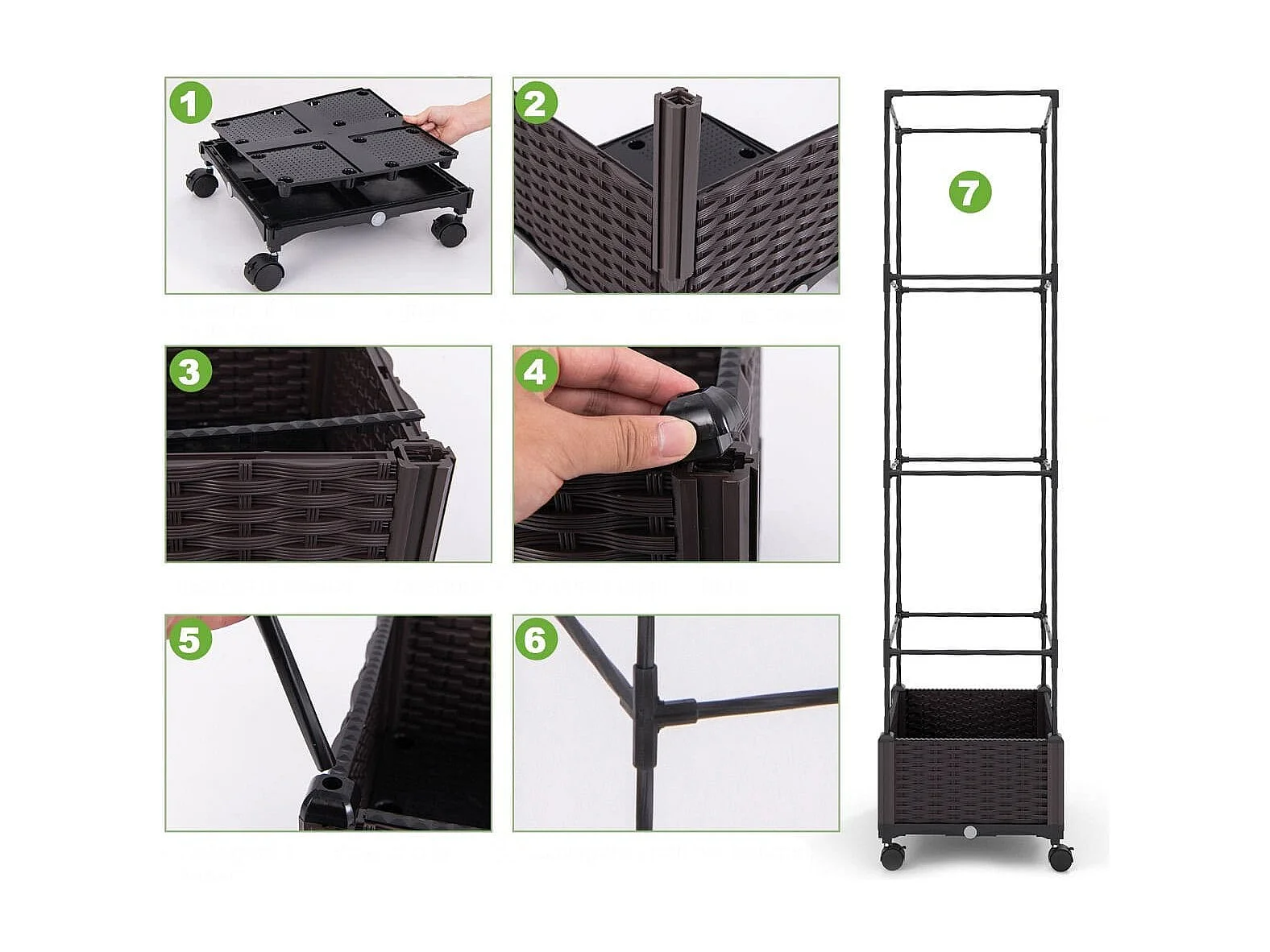 Potager Surélevé Vertical de 170cm avec Bac et Treillis Jardinière avec Système d'Auto-Irrigation Hauteur Ajustable Bac à Tomates sur Roues