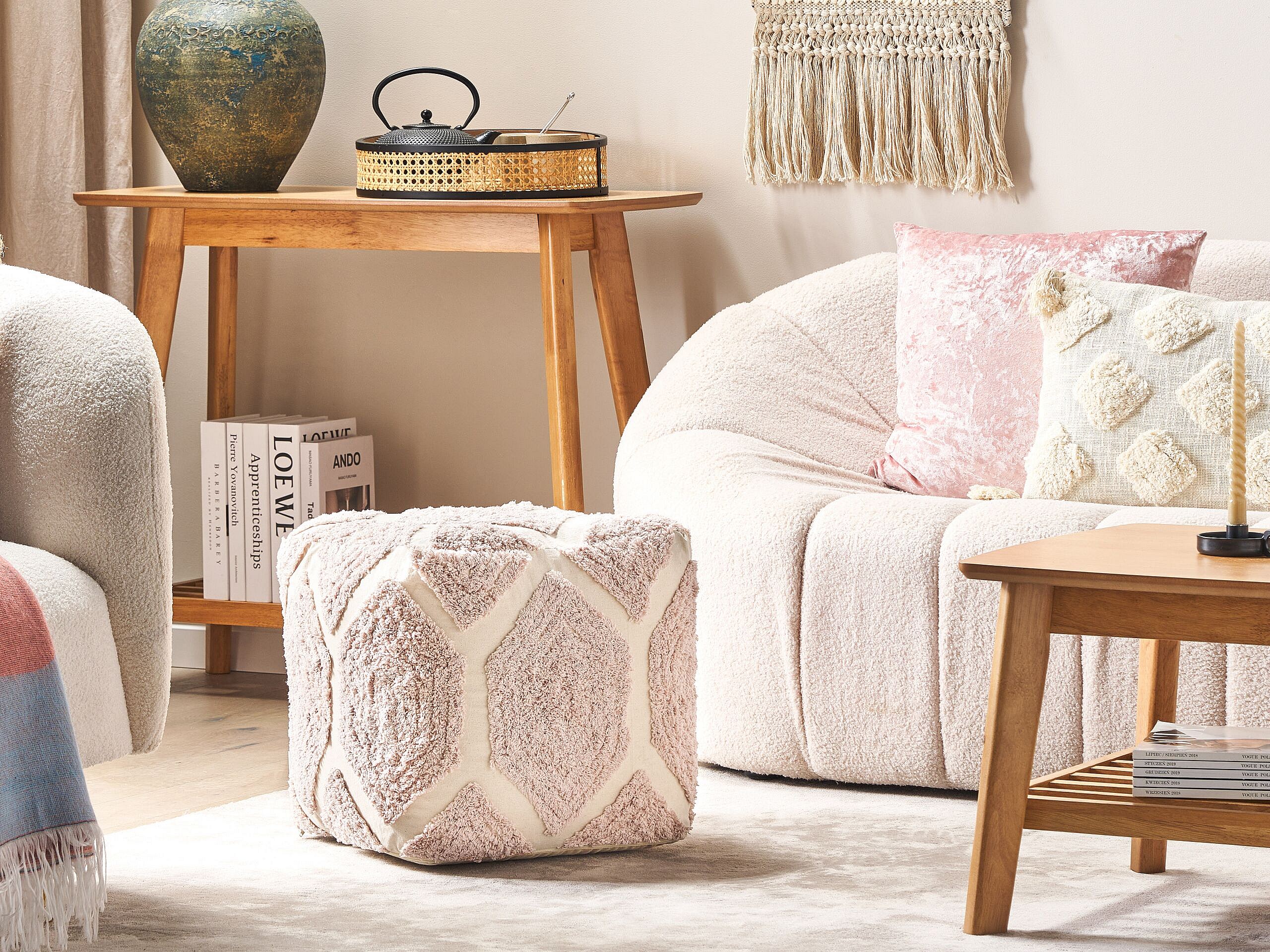 Tabouret bas coffre de rangement en tissu bouclette et métal noir - Crème - ESDALO