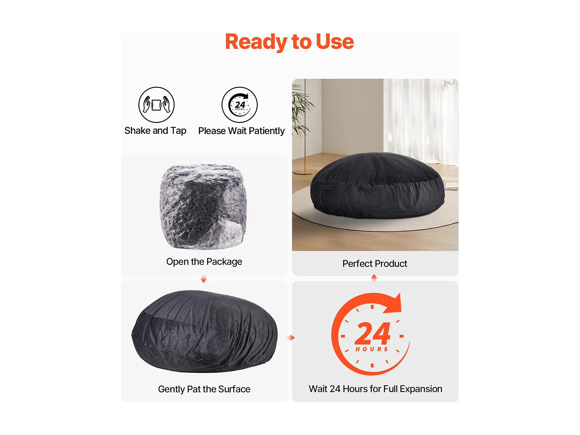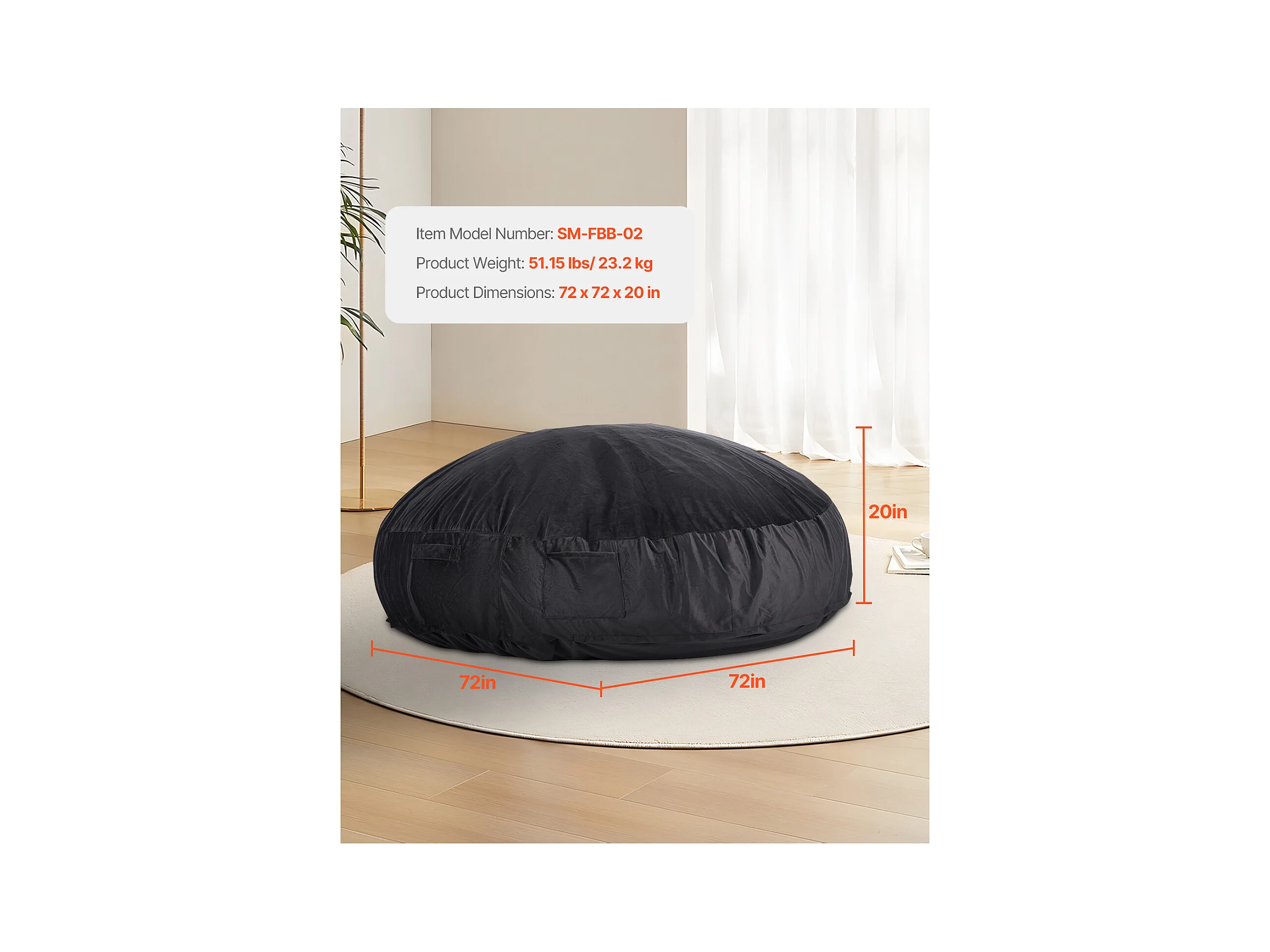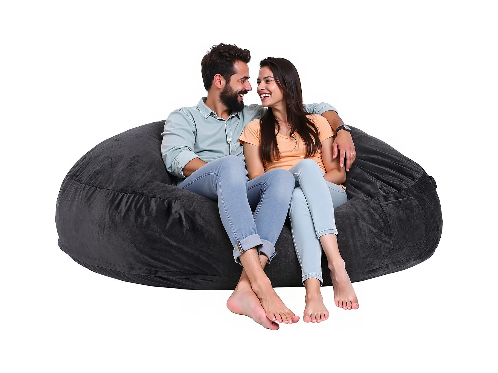 Pouf Fauteuil, SucceBuy Pouf Rond pour Adulte avec Housse Amovible et Lavable Géant Noir
