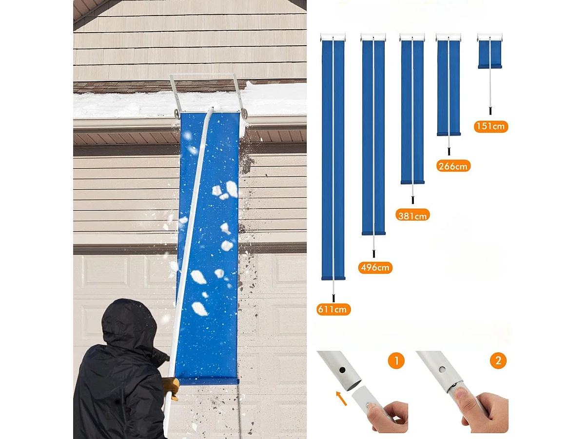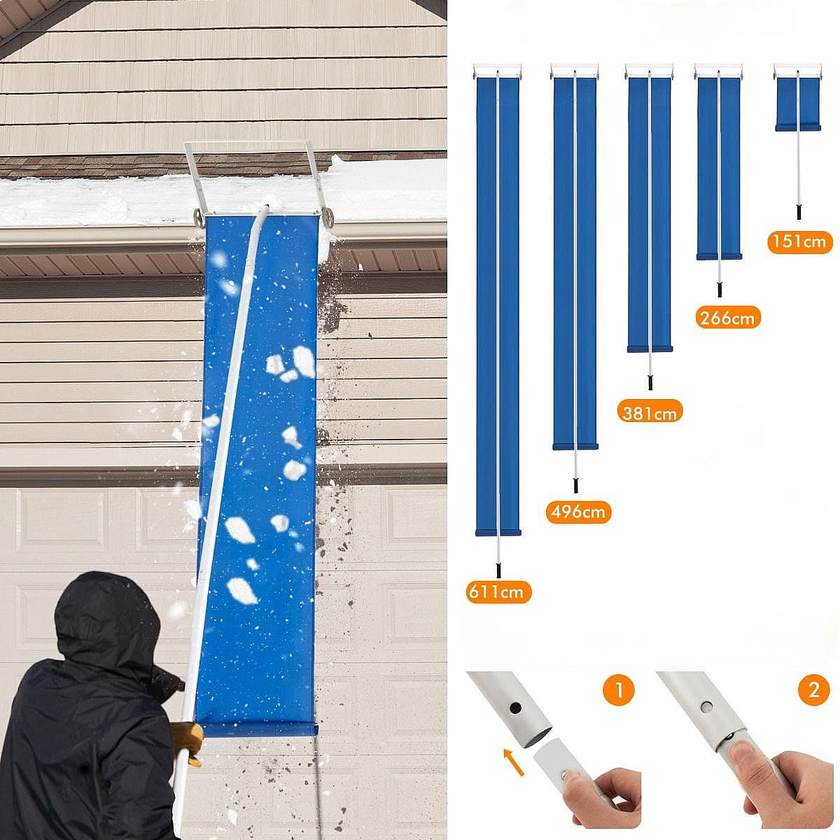 Râteau à Neige pour Toit avec 4 Tiges D'extension 151-611 CM Déneigement de Toit en Aluminium pour Maison Véhicule Garage