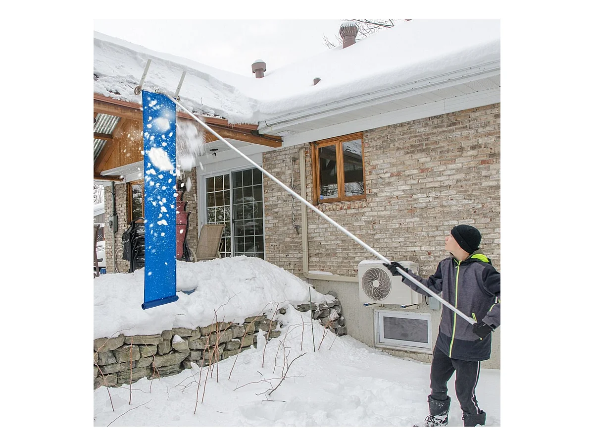 Râteau à Neige pour Toit avec 4 Tiges Longueur Max de 624 cm Déneigement de Toit en Aluminium pour Maison Véhicule Garage