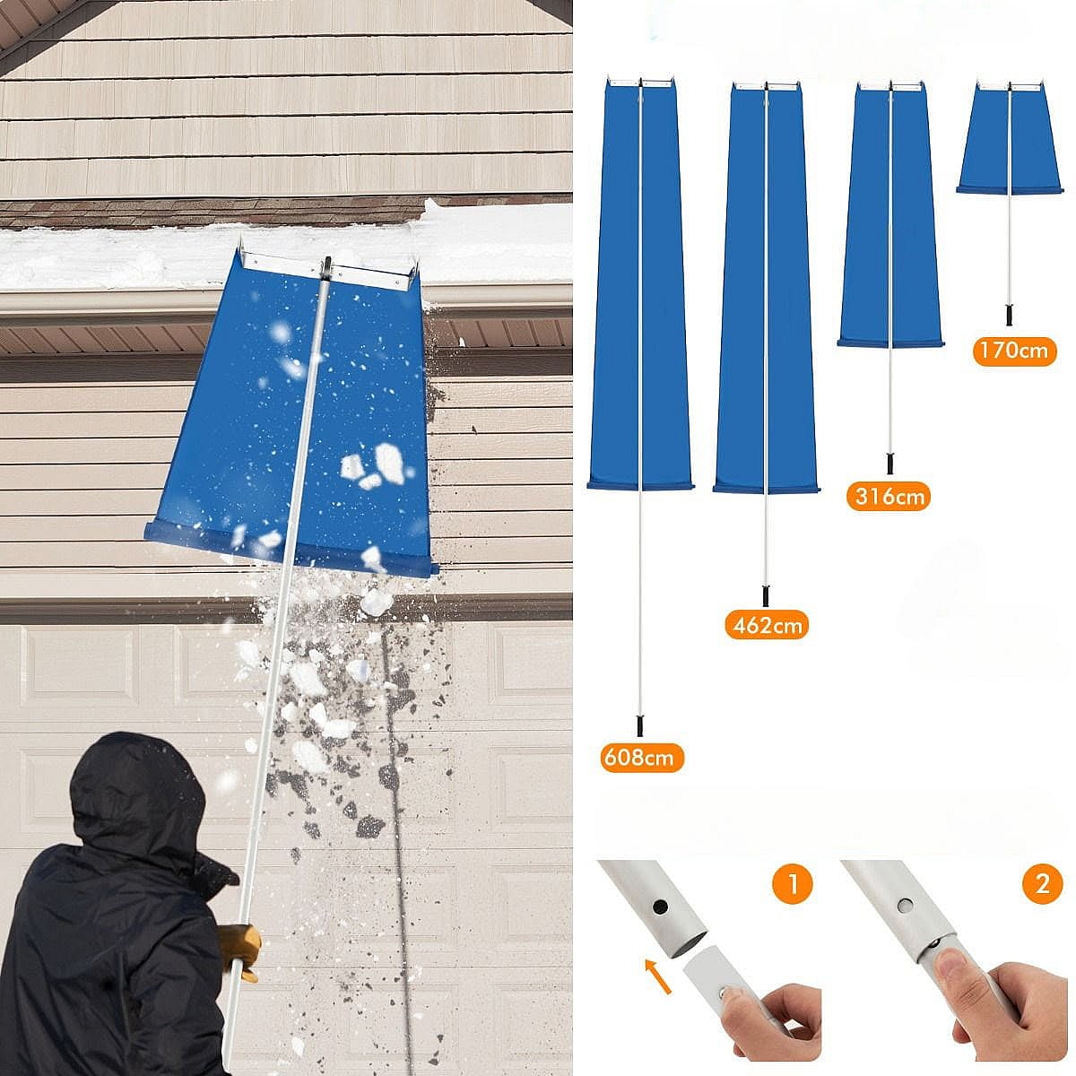 Râteau à Neige pour Toit avec 4 Tiges d'Extension 170-608 cm Déneigement de Toit en Aluminium pour Maison Véhicule