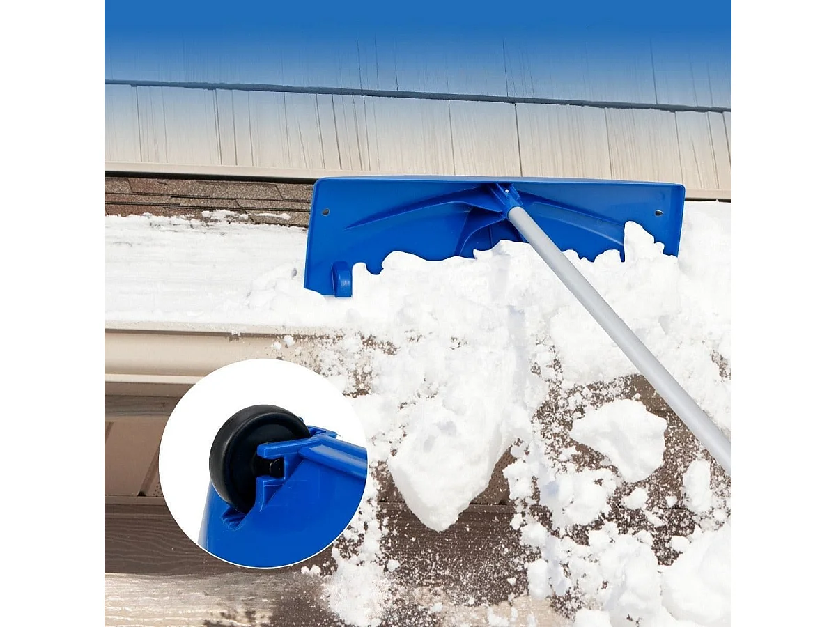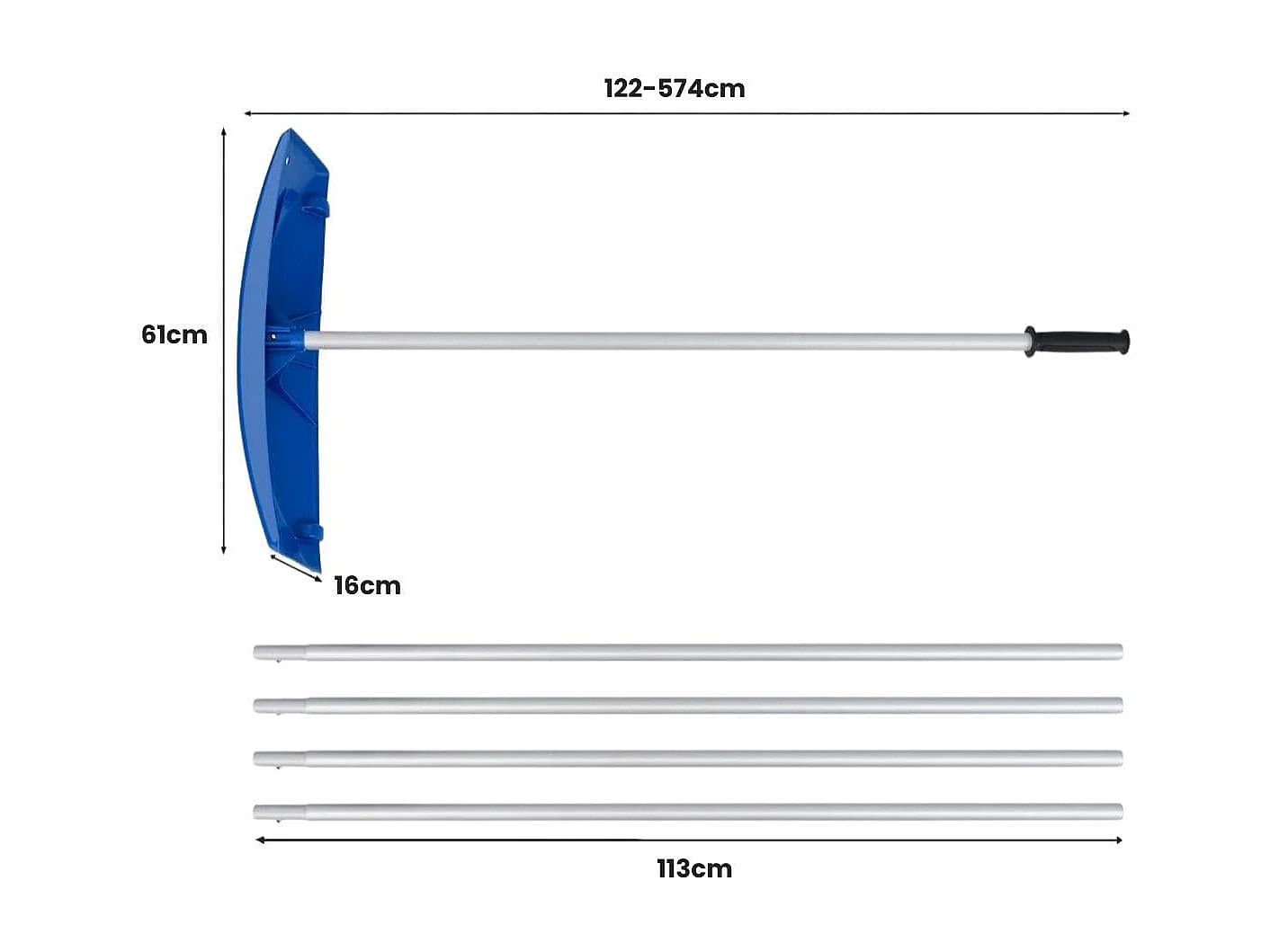 Râteau de Toit à Neige en Aluminium, Déneigement de Toit Réglable avec 5 Tiges Longueur Max de 574 cm 2 Roues Lisses Tête Large Garage
