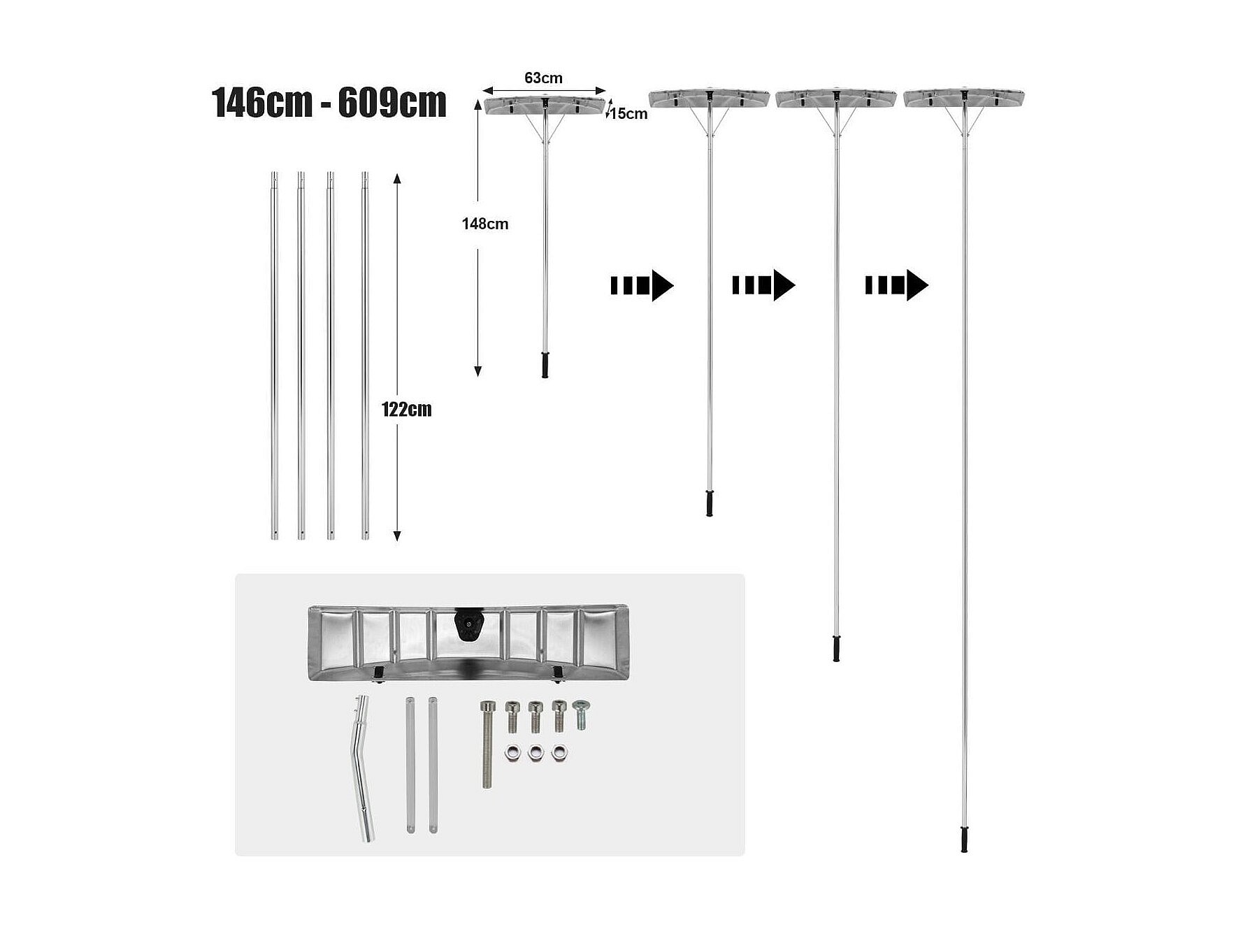 Râteau de Toit à Neige Extensible 1,50-6 m Déneigement de Toit en Aluminium avec Lame 63 cm 1 Tige de Manipulation et 4 Extensibles 2 Rouleaux