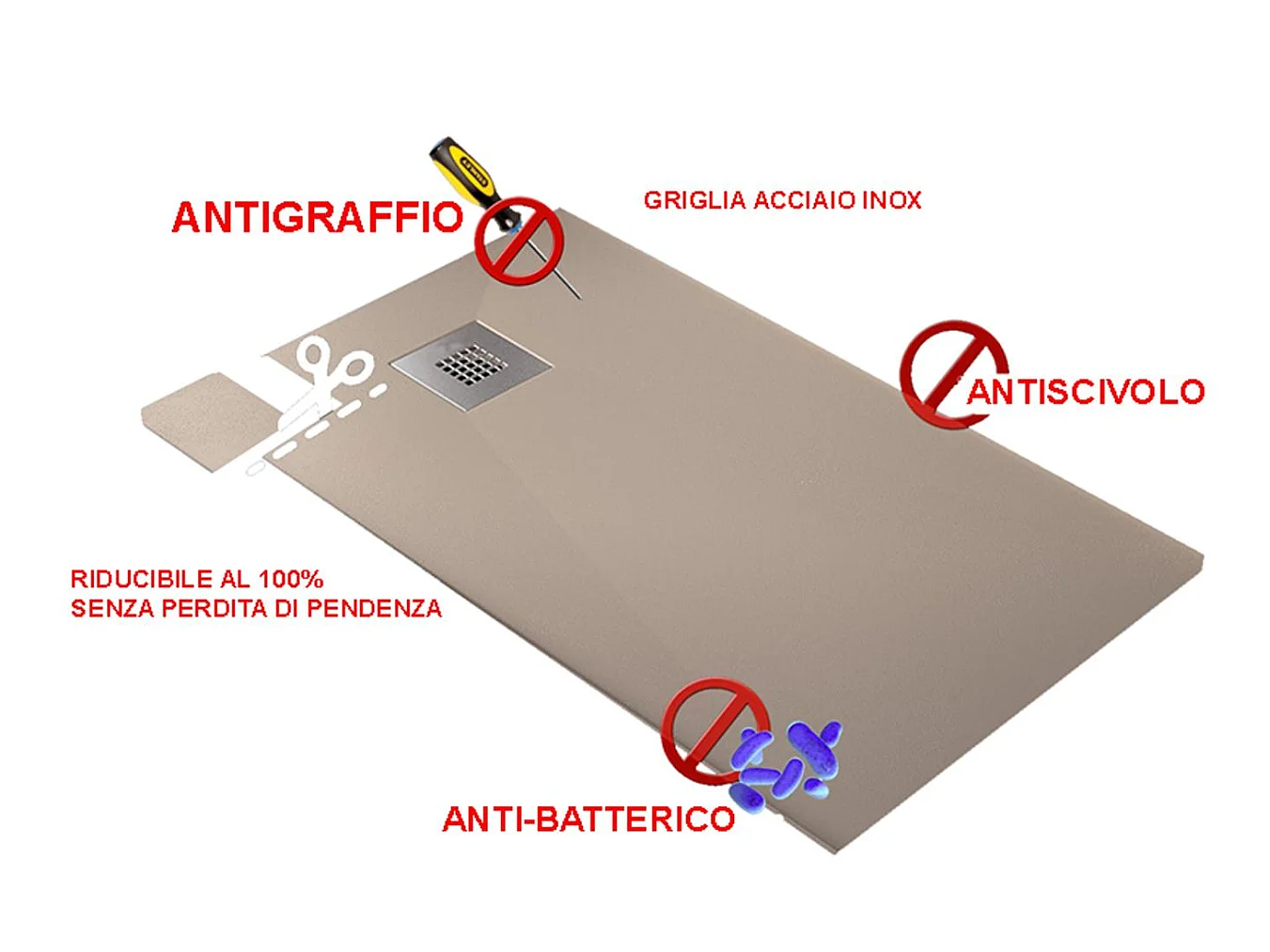 Receveur de Douche 70X110 cm Ligne Vulcano Extra Slim Couleur Gris Foncé Ral 7005 En Résine Synthétique et Poussière de Marbre Avec Bonde Gratuite