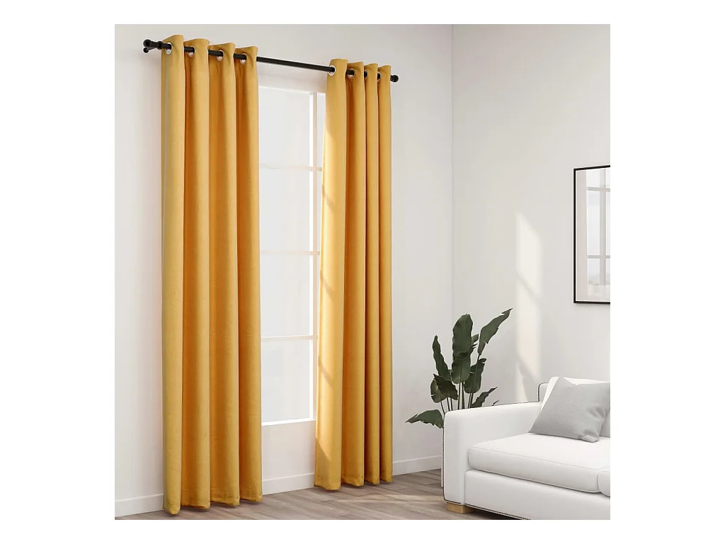 Rideaux occultants Aspect lin à œillets 2 pcs Jaune 140x175 cm