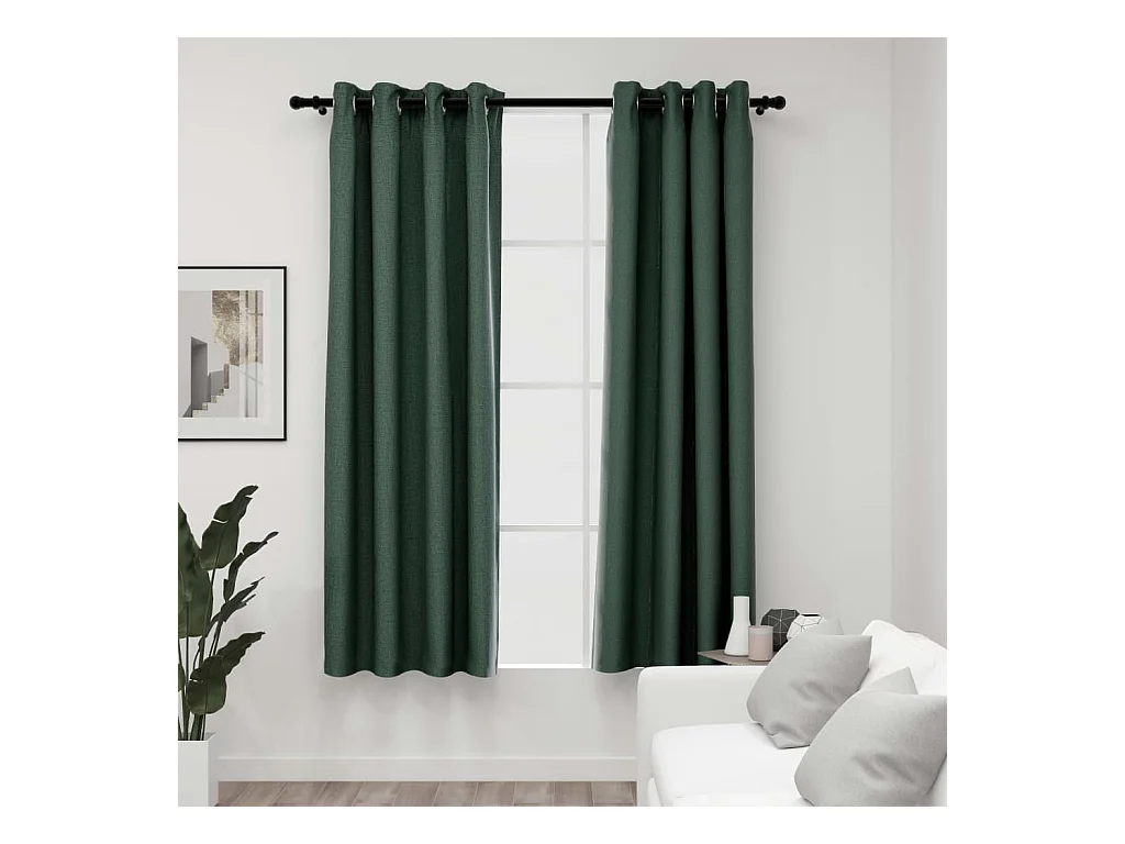 Rideaux occultants Aspect lin avec œillets 2 pcs Vert 140x225cm