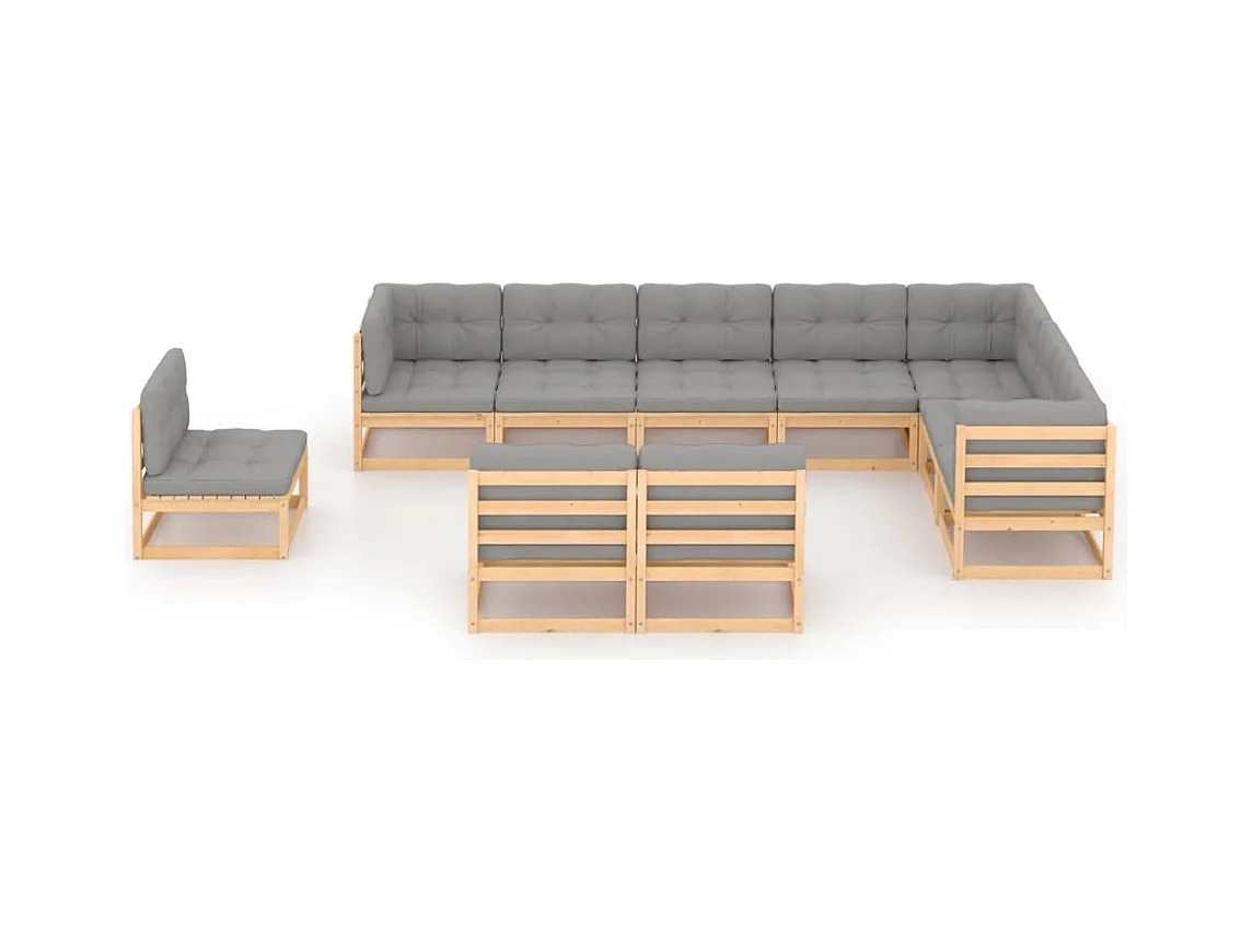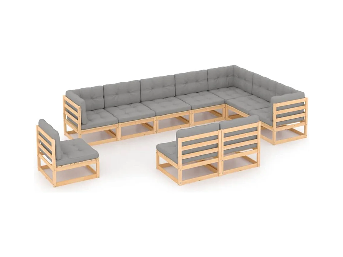 Salon de jardin 10 pcs avec coussins Bois de pin massif