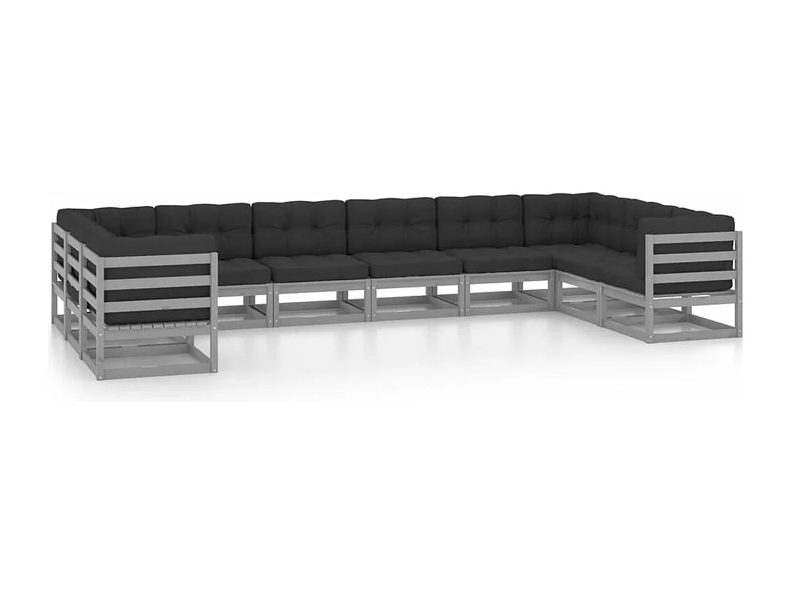 Salon de jardin 10 pcs avec coussins Gris Bois de pin massif