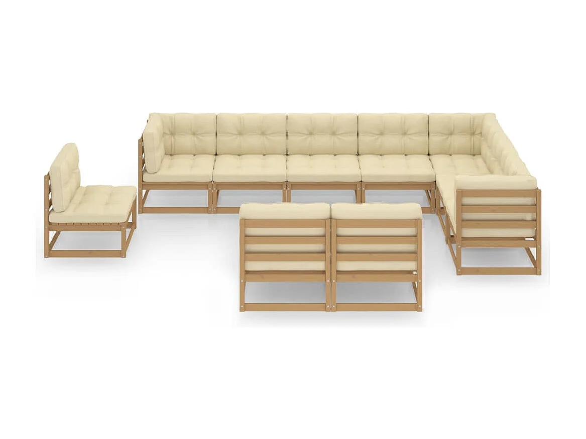 Salon de jardin 10 pcs avec coussins Marron miel Bois de pin
