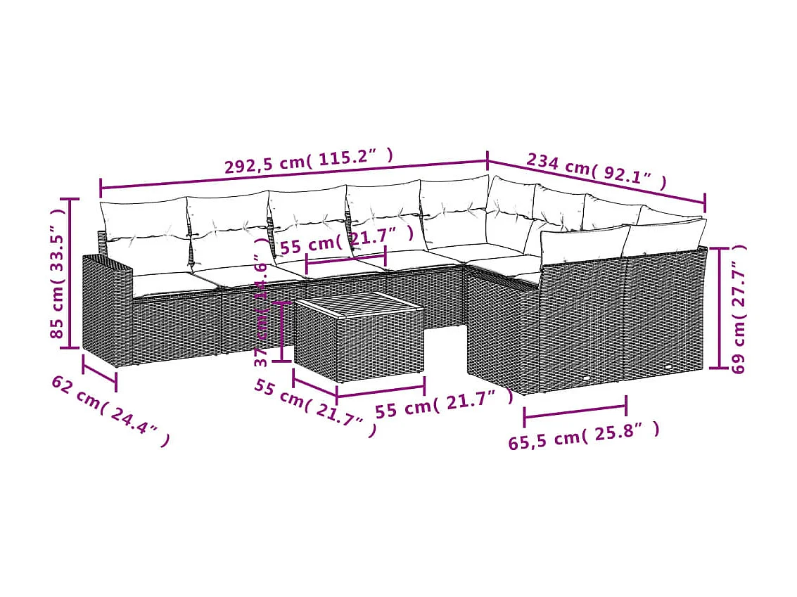 Salon de jardin 10 pcs avec coussins noir résine tressée